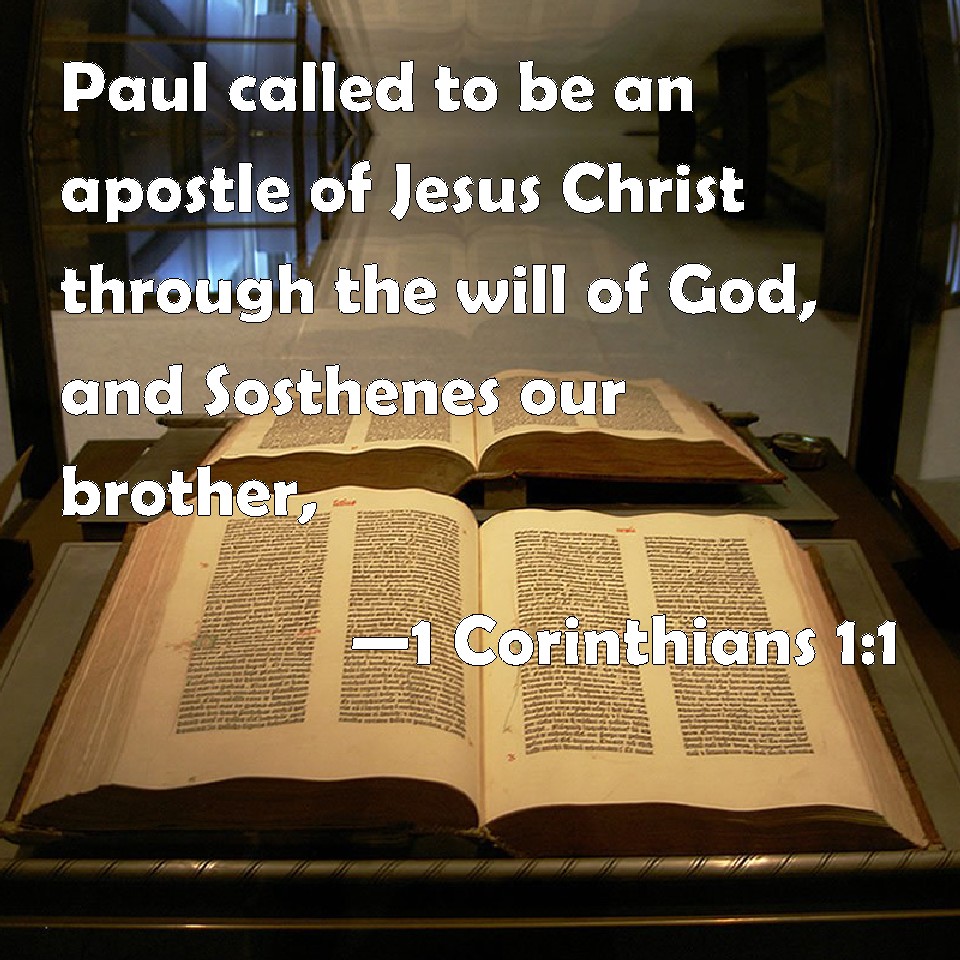 Choose a Background 1 Corinthians 1:1 Paul called to be an apostle of Jesus Christ through the will of God, and Sosthenes our brother, KJV: Paul, called to be an apostle of Jesus Christ through the will of God, and Sosthenes our brother, DRB: PAUL, called to be an apostle of Jesus Christ by the will of God, and Sosthenes a brother, DBT: Paul, a called apostle of Jesus Christ, by God's will, and Sosthenes the brother, ERV: Paul, called to be an apostle of Jesus Christ through the will of God, and Sosthenes our brother, WBT: Paul, called to be an apostle of Jesus Christ through the will of God, and Sosthenes our brother, WEB: Paul, called to be an apostle of Jesus Christ through the will of God, and our brother Sosthenes, YLT: Paul, a called apostle of Jesus Christ, through the will of God, and Sosthenes the brother,Links 1 Corinthians 1:1 NIV • 1 Corinthians 1:1 NLT • 1 Corinthians 1:1 ESV • 1 Corinthians 1:1 NASB • 1 Corinthians 1:1 KJV • 1 Corinthians 1:1 Interlinear • 1 Corinthians 1:1 Commentaries • 1 Corinthians 1:1 Parallel Texts • 1 Corinthians 1:1 Bible Apps • 1 Corinthians 1:1 Parallel • Bible Hub |