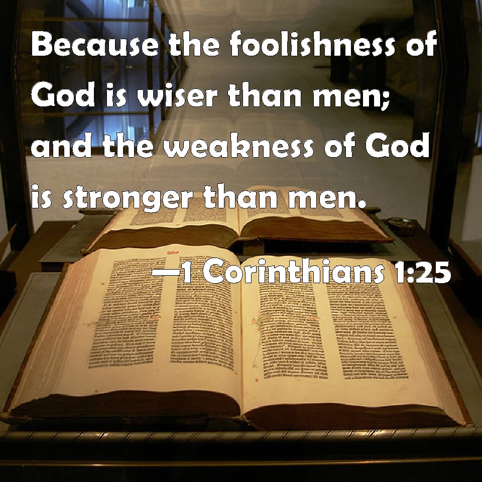 1 Corinthians 1:25 Because the foolishness of God is wiser than men; and the weakness of God is stronger than men.