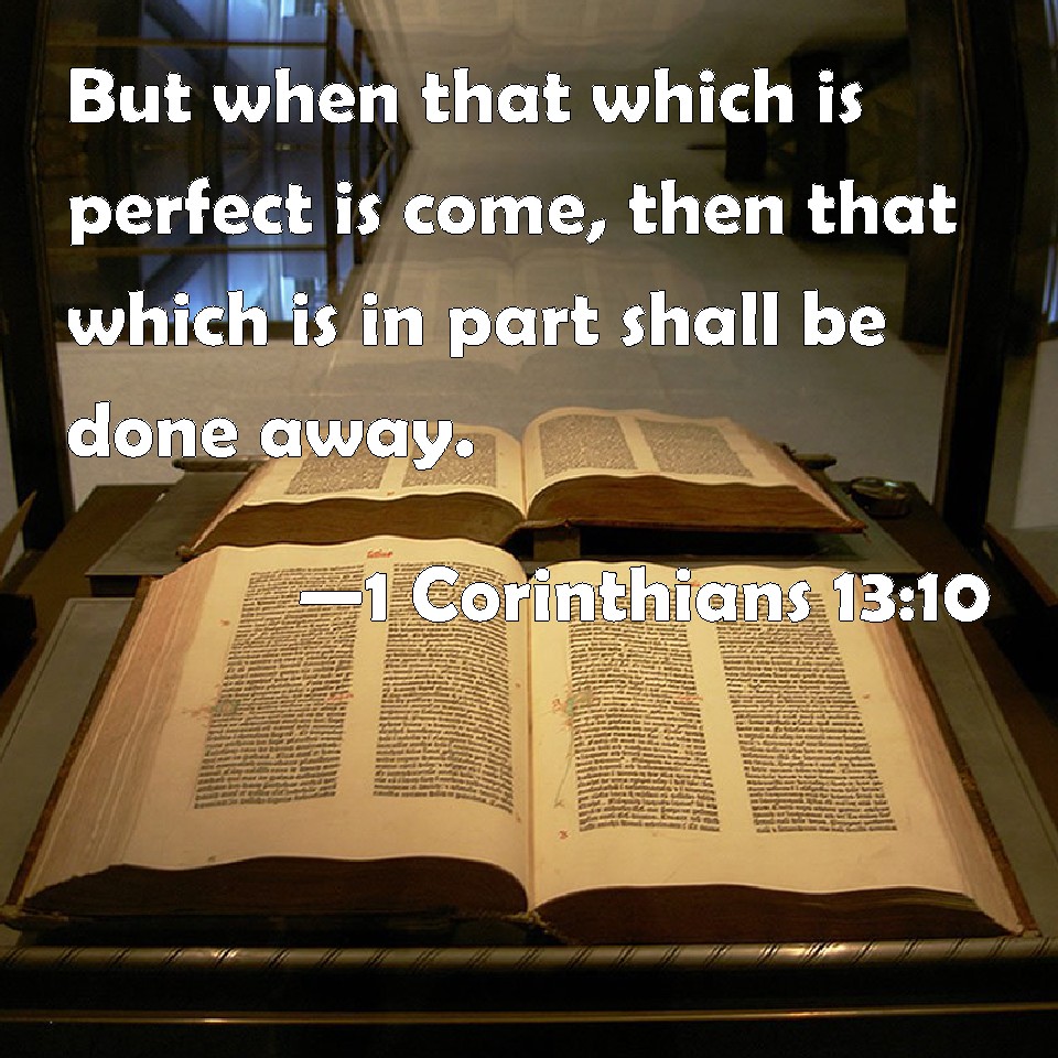 1 Corinthians 13:10 But when that which is perfect is come, then that which is in part shall be done away.