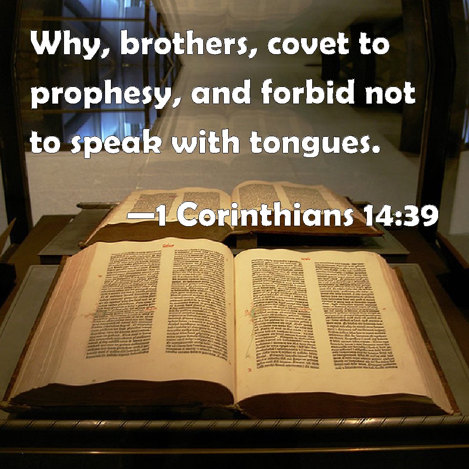 Choose a Background 1 Corinthians 14:39 Why, brothers, covet to prophesy, and forbid not to speak with tongues. KJV: Wherefore, brethren, covet to prophesy, and forbid not to speak with tongues. DRB: Wherefore, brethren, be zealous to prophesy; and forbid not to speak with tongues. DBT: So that, brethren, desire to prophesy, and do not forbid the speaking with tongues. ERV: Wherefore, my brethren, desire earnestly to prophesy, and forbid not to speak with tongues. WBT: Wherefore, brethren, covet to prophesy, and forbid not to speak in languages. WEB: Therefore, brothers, desire earnestly to prophesy, and don't forbid speaking with other languages. YLT: so that, brethren, earnestly desire to prophesy, and to speak with tongues do not forbid;Links 1 Corinthians 14:39 NIV • 1 Corinthians 14:39 NLT • 1 Corinthians 14:39 ESV • 1 Corinthians 14:39 NASB • 1 Corinthians 14:39 KJV • 1 Corinthians 14:39 Interlinear • 1 Corinthians 14:39 Commentaries • 1 Corinthians 14:39 Parallel Texts • 1 Corinthians 14:39 Bible Apps • 1 Corinthians 14:39 Parallel • Bible Hub |