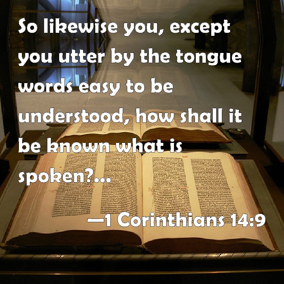 Choose a Background 1 Corinthians 14:9 So likewise you, except you utter by the tongue words easy to be understood, how shall it be known what is spoken? for you shall speak into the air. KJV: So likewise ye, except ye utter by the tongue words easy to be understood, how shall it be known what is spoken? for ye shall speak into the air. DRB: So likewise you, except you utter by the tongue plain speech, how shall it be known what is said ? For you shall be speaking into the air. DBT: Thus also ye with the tongue, unless ye give a distinct speech, how shall it be known what is spoken? for ye will be speaking to the air. ERV: So also ye, unless ye utter by the tongue speech easy to be understood, how shall it be known what is spoken? for ye will be speaking into the air. WBT: So likewise ye, except ye utter by the tongue words easy to be understood, how shall it be known what is spoken? for ye will speak into the air. WEB: So also you, unless you uttered by the tongue words easy to understand, how would it be known what is spoken? For you would be speaking into the air. YLT: so also ye, if through the tongue, speech easily understood ye may not give — how shall that which is spoken be known? for ye shall be speaking to air.Links 1 Corinthians 14:9 NIV • 1 Corinthians 14:9 NLT • 1 Corinthians 14:9 ESV • 1 Corinthians 14:9 NASB • 1 Corinthians 14:9 KJV • 1 Corinthians 14:9 Interlinear • 1 Corinthians 14:9 Commentaries • 1 Corinthians 14:9 Parallel Texts • 1 Corinthians 14:9 Bible Apps • 1 Corinthians 14:9 Parallel • Bible Hub |