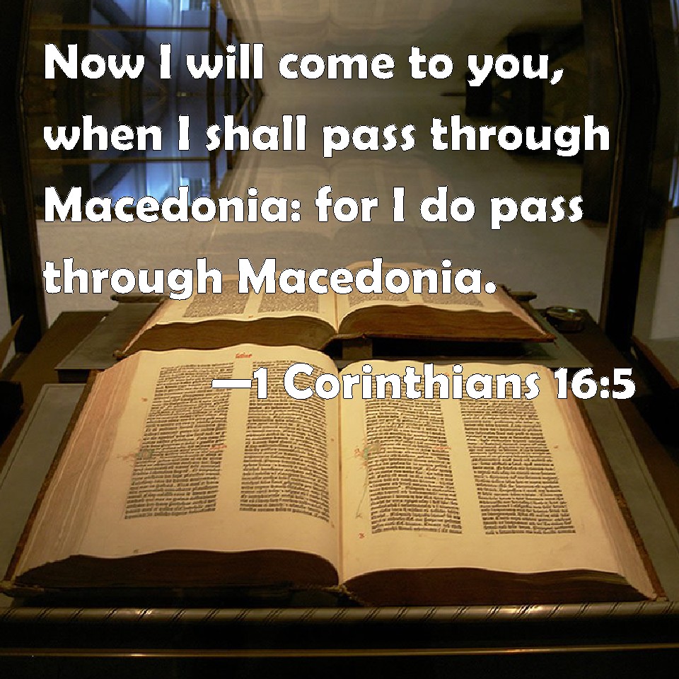 1 Corinthians 16:5 Now I will come to you, when I shall pass through Macedonia: for I do pass through Macedonia.