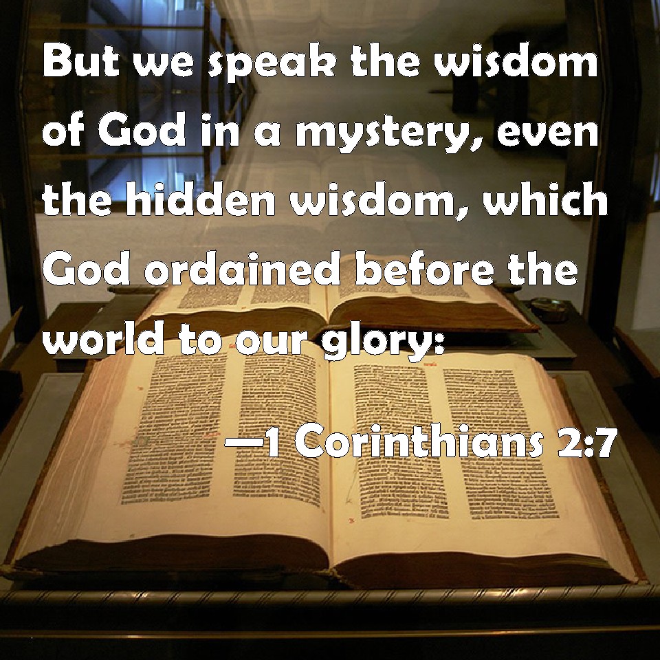 Choose a Background 1 Corinthians 2:7 But we speak the wisdom of God in a mystery, even the hidden wisdom, which God ordained before the world to our glory: KJV: But we speak the wisdom of God in a mystery, even the hidden wisdom, which God ordained before the world unto our glory: DRB: But we speak the wisdom of God in a mystery, a wisdom which is hidden, which God ordained before the world, unto our glory : DBT: But we speak God's wisdom in a mystery, that hidden wisdom which God had predetermined before the ages for our glory: ERV: but we speak God's wisdom in a mystery, even the wisdom that hath been hidden, which God foreordained before the worlds unto our glory: WBT: But we speak the wisdom of God in a mystery, even the hidden wisdom which God ordained before the world to our glory: WEB: But we speak God's wisdom in a mystery, the wisdom that has been hidden, which God foreordained before the worlds for our glory, YLT: but we speak the hidden wisdom of God in a secret, that God foreordained before the ages to our glory,Links 1 Corinthians 2:7 NIV • 1 Corinthians 2:7 NLT • 1 Corinthians 2:7 ESV • 1 Corinthians 2:7 NASB • 1 Corinthians 2:7 KJV • 1 Corinthians 2:7 Interlinear • 1 Corinthians 2:7 Commentaries • 1 Corinthians 2:7 Parallel Texts • 1 Corinthians 2:7 Bible Apps • 1 Corinthians 2:7 Parallel • Bible Hub |