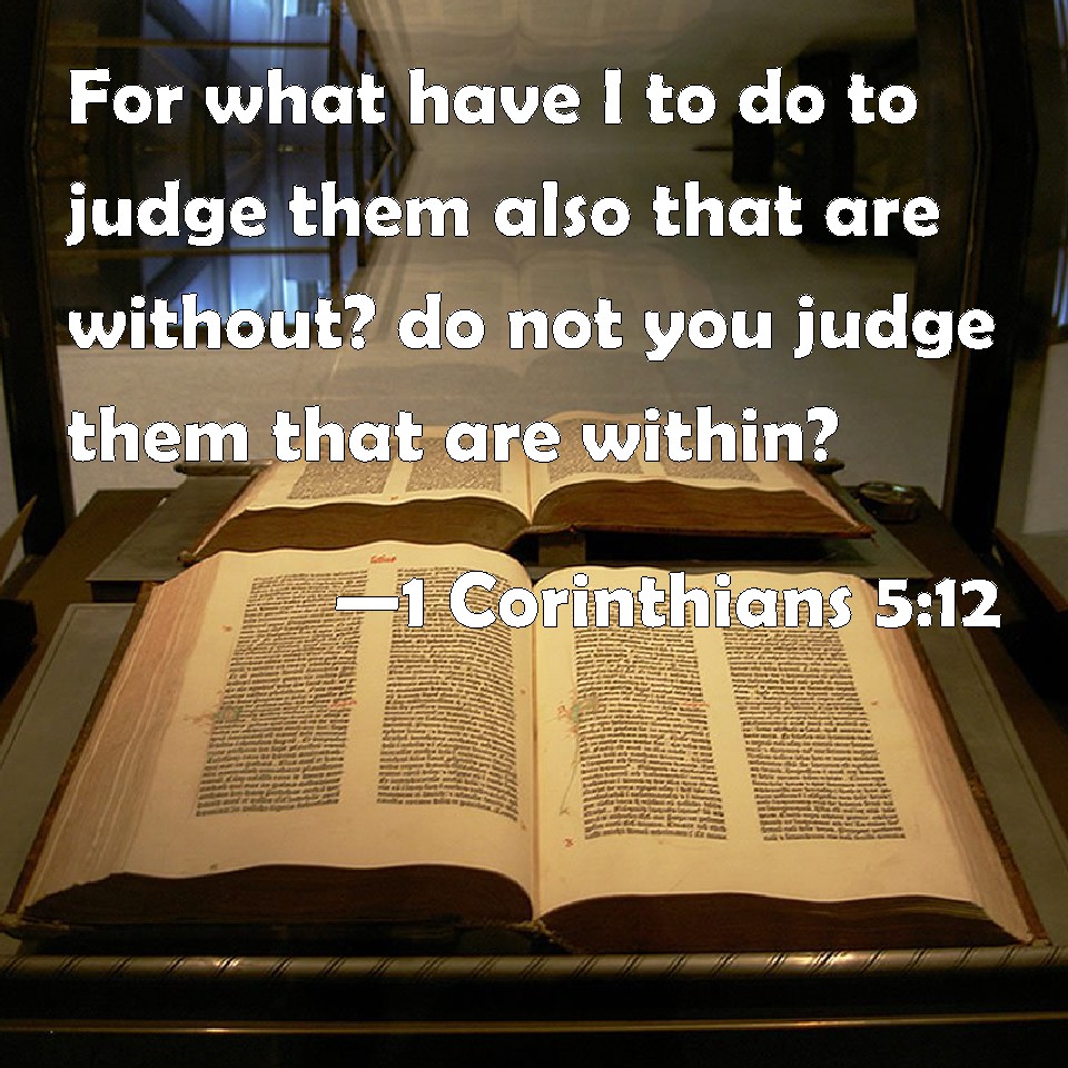 1 Corinthians 5:12 For what have I to do to judge them also that are without? do not you judge them that are within?