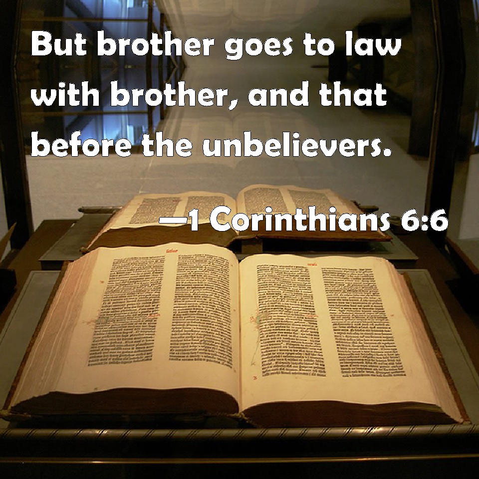 1 Corinthians 6:6 But brother goes to law with brother, and that before the unbelievers.