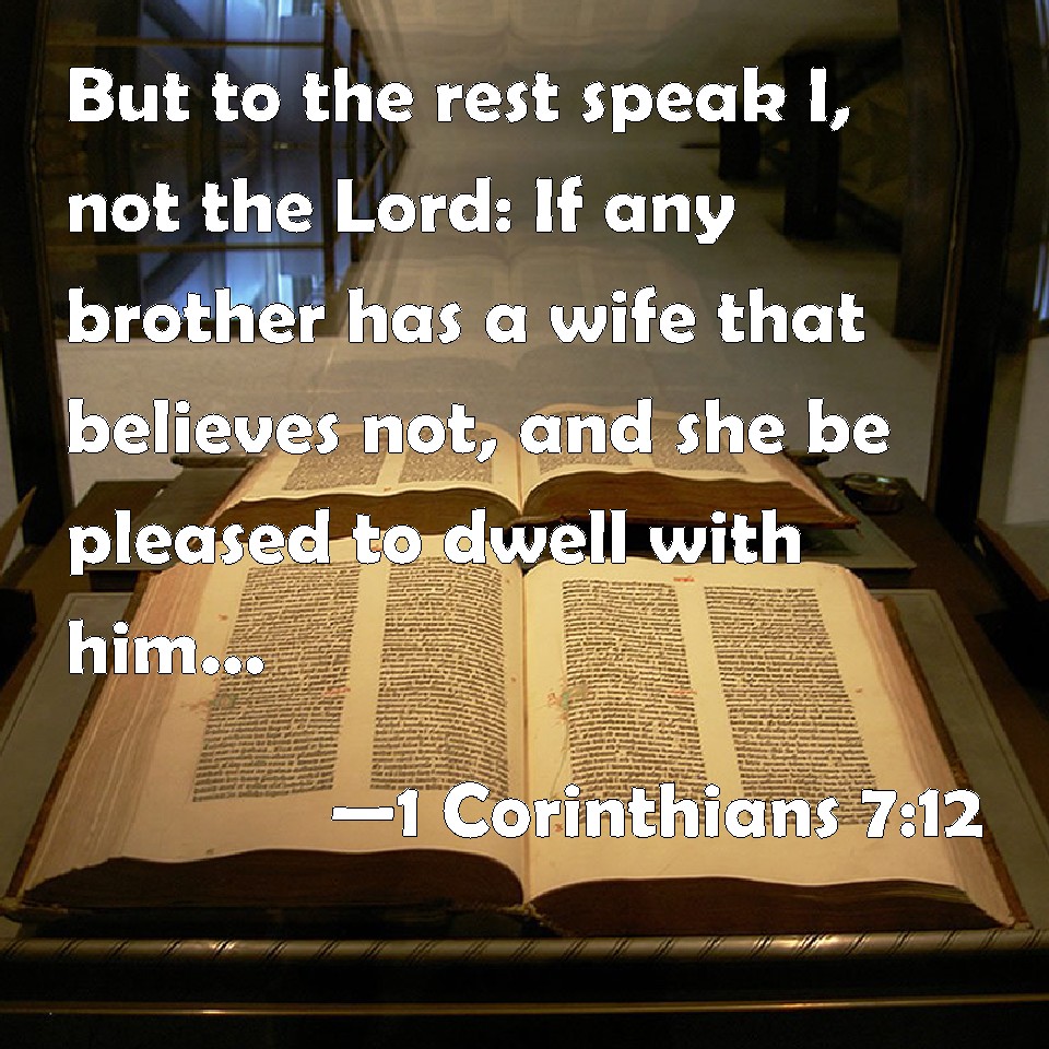 WBT:  But to the rest I speak, not the Lord, if any brother hath a wife that believeth not, and she is pleased to dwell with him, let him not put her away.