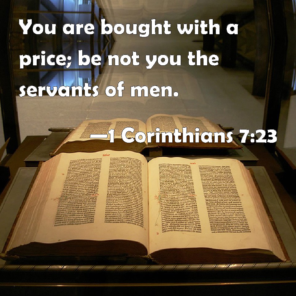 1 Corinthians 7:23 You are bought with a price; be not you the servants of men.