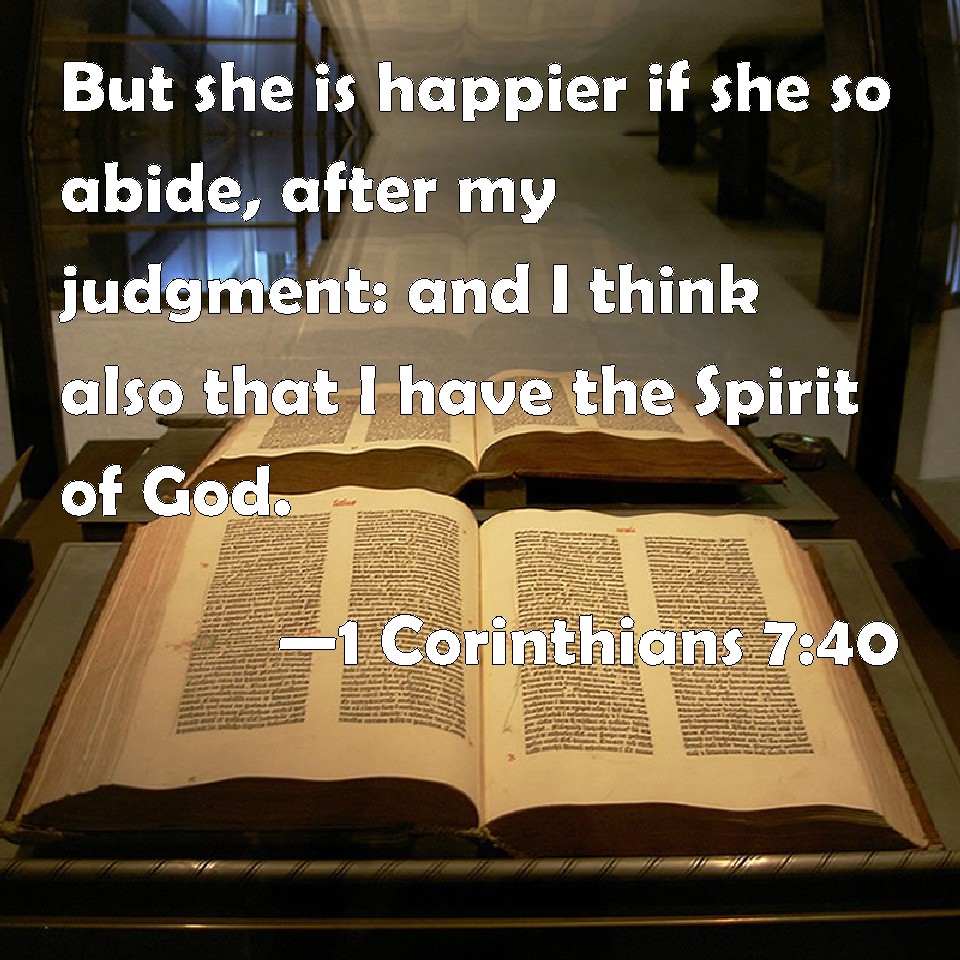 1 Corinthians 7:40 But she is happier if she so abide, after my judgment: and I think also that I have the Spirit of God.