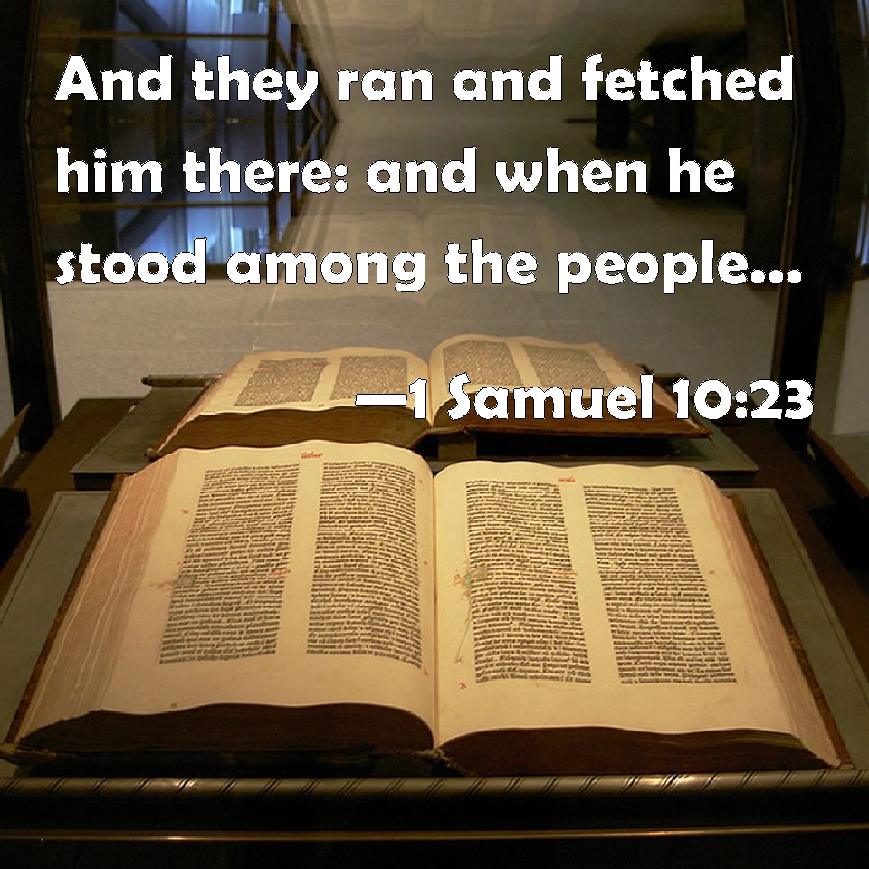 1 Samuel 10:23 And they ran and fetched him there: and when he stood among the people, he was higher than any of the people from his shoulders and upward.