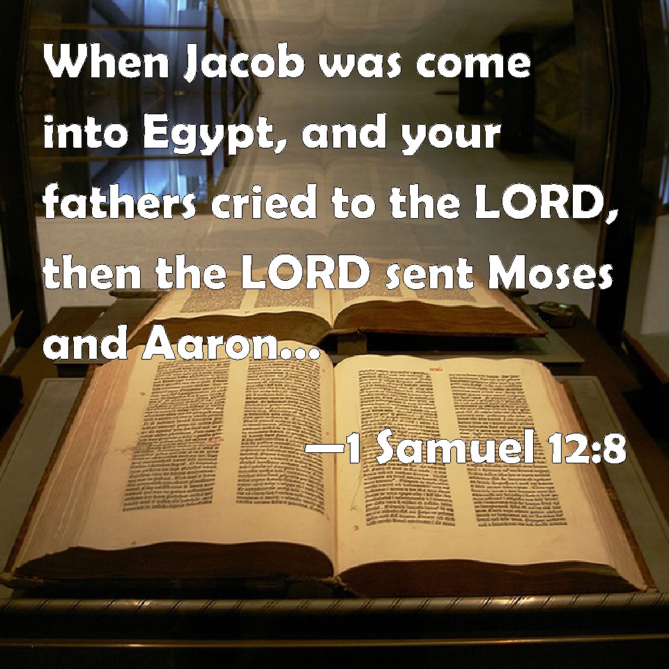 Choose a Background 1 Samuel 12:8 When Jacob was come into Egypt, and your fathers cried to the LORD, then the LORD sent Moses and Aaron, which brought forth your fathers out of Egypt, and made them dwell in this place. KJV: When Jacob was come into Egypt, and your fathers cried unto the LORD, then the LORD sent Moses and Aaron, which brought forth your fathers out of Egypt, and made them dwell in this place. DRB: How Jacob went into Egypt, and your fathers cried to the Lord: and the Lord sent Moses and Aaron, and brought your fathers out of Egypt: and made them dwell in this place. DBT: When Jacob had come into Egypt, and your fathers cried to Jehovah, then Jehovah sent Moses and Aaron, and they brought your fathers forth out of Egypt, and made them dwell in this place. ERV: When Jacob was come into Egypt, and your fathers cried unto the LORD, then the LORD sent Moses and Aaron, who brought forth your fathers out of Egypt, and made them to dwell in this place. WBT: When Jacob had come into Egypt, and your fathers cried to the LORD, then the LORD sent Moses and Aaron, who brought forth your fathers from Egypt, and made them dwell in this place. WEB: "When Jacob was come into Egypt, and your fathers cried to Yahweh, then Yahweh sent Moses and Aaron, who brought forth your fathers out of Egypt, and made them to dwell in this place. YLT: 'When Jacob hath come in to Egypt, and your fathers cry unto Jehovah, then Jehovah sendeth Moses and Aaron, and they bring out your fathers from Egypt, and cause them to dwell in this place,Links 1 Samuel 12:8 NIV • 1 Samuel 12:8 NLT • 1 Samuel 12:8 ESV • 1 Samuel 12:8 NASB • 1 Samuel 12:8 KJV • 1 Samuel 12:8 Interlinear • 1 Samuel 12:8 Commentaries • 1 Samuel 12:8 Parallel Texts • 1 Samuel 12:8 Bible Apps • 1 Samuel 12:8 Parallel • Bible Hub |