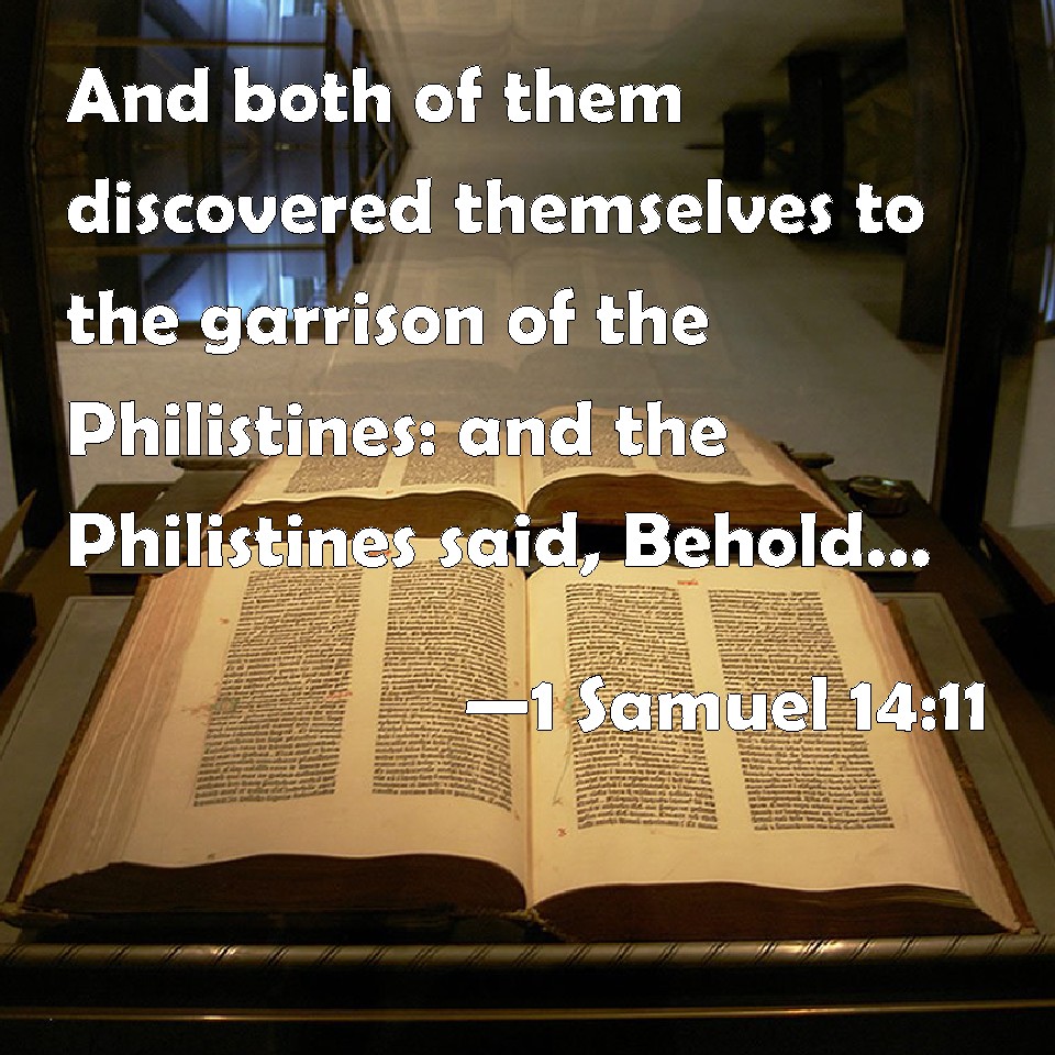 Choose a Background 1 Samuel 14:11 And both of them discovered themselves to the garrison of the Philistines: and the Philistines said, Behold, the Hebrews come forth out of the holes where they had hid themselves. KJV: And both of them discovered themselves unto the garrison of the Philistines: and the Philistines said, Behold, the Hebrews come forth out of the holes where they had hid themselves. DRB: So both of them discovered themselves to the garrison of the Philistines: and the Philistines said: Behold the Hebrews come forth out of the holes wherein they were hid. DBT: And both of them shewed themselves to the garrison of the Philistines; and the Philistines said, Behold, the Hebrews come forth out of the holes where they had hid themselves. ERV: And both of them discovered themselves unto the garrison of the Philistines: and the Philistines said, Behold, the Hebrews come forth out of the holes where they had hid themselves. WBT: And both of them discovered themselves to the garrison of the Philistines: and the Philistines said, Behold, the Hebrews come forth out of the holes where they had hid themselves. WEB: Both of them revealed themselves to the garrison of the Philistines: and the Philistines said, "Behold, the Hebrews are coming out of the holes where they had hidden themselves!" YLT: And revealed are both of them unto the station of the Philistines, and the Philistines say, 'Lo, Hebrews are coming out of the holes where they have hid themselves.'Links 1 Samuel 14:11 NIV • 1 Samuel 14:11 NLT • 1 Samuel 14:11 ESV • 1 Samuel 14:11 NASB • 1 Samuel 14:11 KJV • 1 Samuel 14:11 Interlinear • 1 Samuel 14:11 Commentaries • 1 Samuel 14:11 Parallel Texts • 1 Samuel 14:11 Bible Apps • 1 Samuel 14:11 Parallel • Bible Hub |