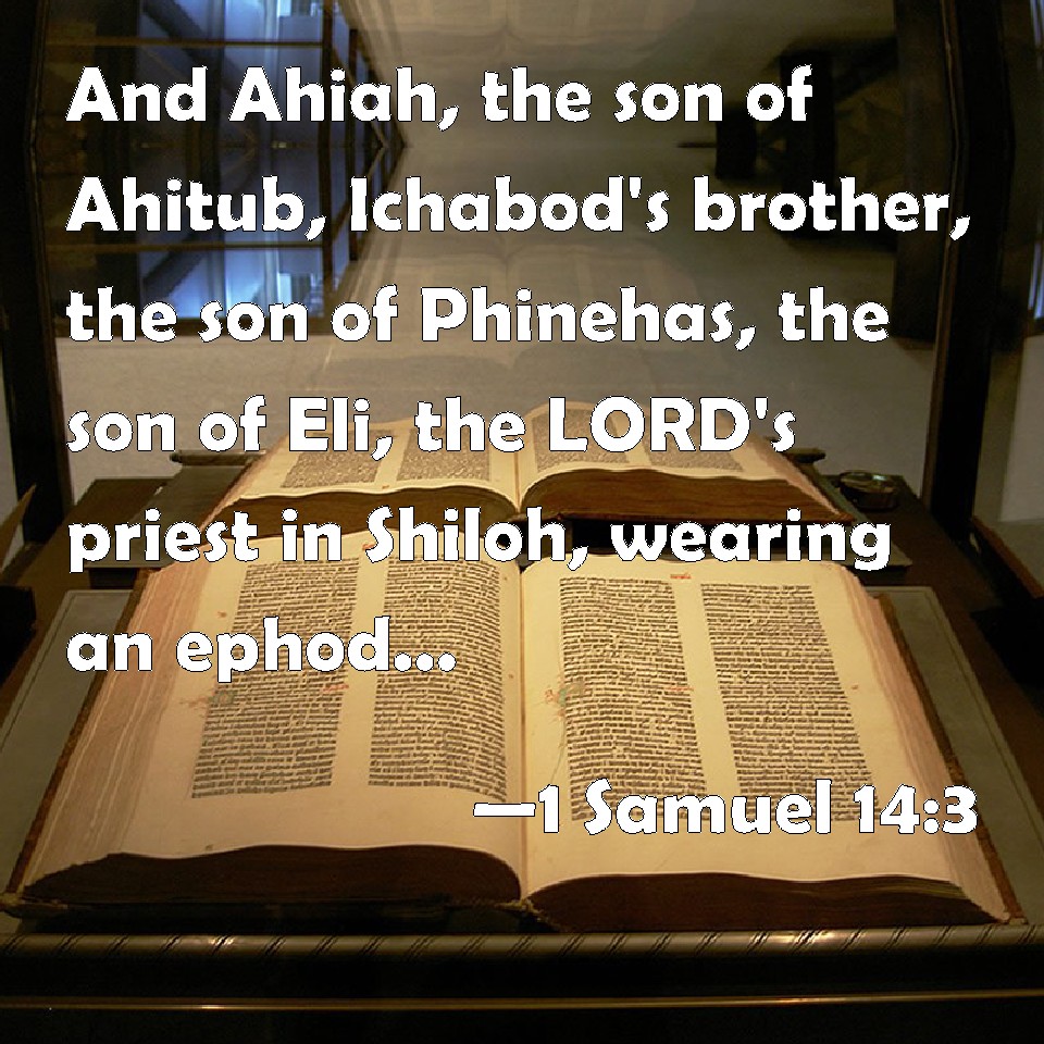 1 Samuel 14:3 And Ahiah, the son of Ahitub, Ichabod's brother, the son of Phinehas, the son of Eli, the LORD's priest in Shiloh, wearing an ephod. And the people knew not that Jonathan was gone.
