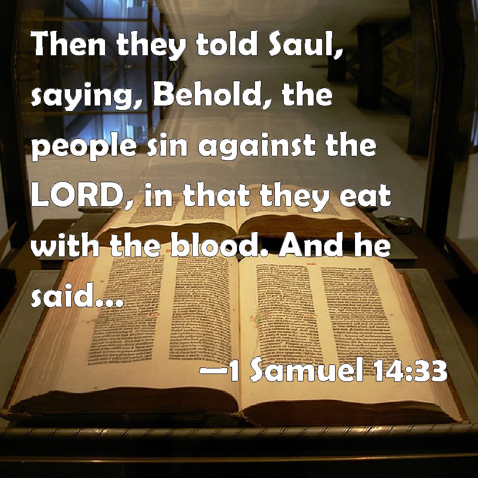 Choose a Background 1 Samuel 14:33 Then they told Saul, saying, Behold, the people sin against the LORD, in that they eat with the blood. And he said, You have transgressed: roll a great stone to me this day. KJV: Then they told Saul, saying, Behold, the people sin against the LORD, in that they eat with the blood. And he said, Ye have transgressed: roll a great stone unto me this day. DRB: And they told Saul that the people had sinned against the Lord, eating with the blood. And he said: You have transgressed: roll here to me now a great stone. DBT: And they told Saul, saying, Behold, the people sin against Jehovah, in that they eat with the blood. And he said, Ye have acted perversely: roll me now a great stone. ERV: Then they told Saul, saying, Behold, the people sin against the LORD, in that they eat with the blood. And he said, Ye have dealt treacherously: roll a great stone unto me this day. WBT: Then they told Saul, saying, Behold, the people sin against the LORD, in that they eat with the blood. And he said, Ye have transgressed: roll a great stone to me this day. WEB: Then they told Saul, saying, "Behold, the people are sinning against Yahweh, in that they eat meat with the blood." He said, "You have dealt treacherously. Roll a large stone to me this day!" YLT: And they declare to Saul, saying, 'Lo, the people are sinning against Jehovah, to eat with the blood.' And he saith, 'Ye have dealt treacherously, roll unto me to-day a great stone.'Links 1 Samuel 14:33 NIV • 1 Samuel 14:33 NLT • 1 Samuel 14:33 ESV • 1 Samuel 14:33 NASB • 1 Samuel 14:33 KJV • 1 Samuel 14:33 Interlinear • 1 Samuel 14:33 Commentaries • 1 Samuel 14:33 Parallel Texts • 1 Samuel 14:33 Bible Apps • 1 Samuel 14:33 Parallel • Bible Hub |