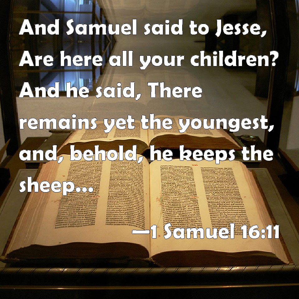 1 Samuel 16:11 And Samuel said to Jesse, Are here all your children? And he said, There remains yet the youngest, and, behold, he keeps the sheep. And Samuel said to Jesse, Send and fetch him: for we will not sit down till he come here.