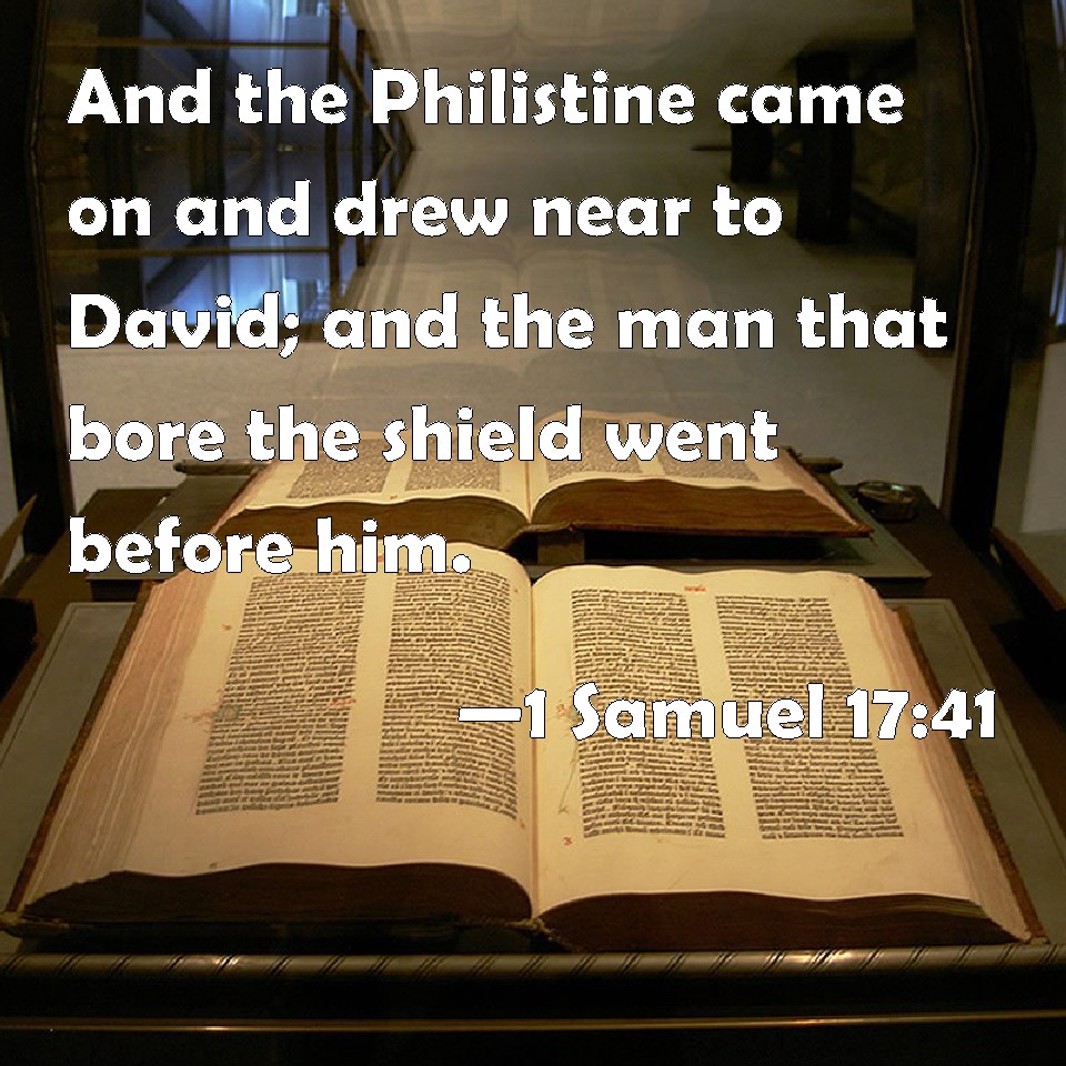 1 Samuel 17:41 And the Philistine came on and drew near to David; and the man that bore the shield went before him.