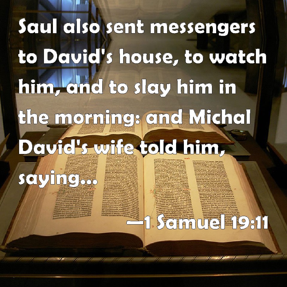 1 Samuel 19:11 Saul also sent messengers to David's house, to watch him, and to slay him in the morning: and Michal David's wife told him, saying, If you save not your life to night, to morrow you shall be slain.