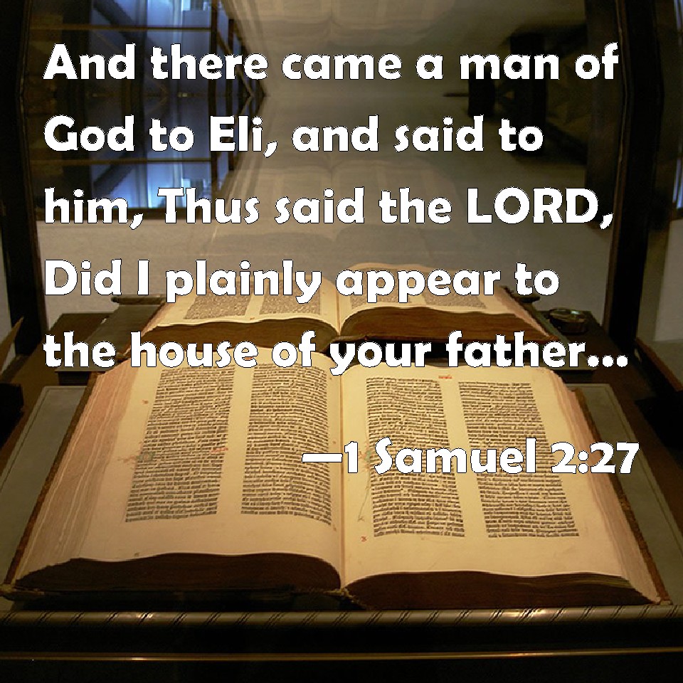 1 Samuel 2:27 And there came a man of God to Eli, and said to him, Thus said the LORD, Did I plainly appear to the house of your father, when they were in Egypt in Pharaoh's house?