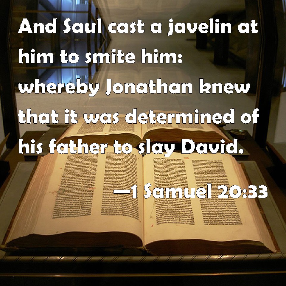 1 Samuel 20:33 And Saul cast a javelin at him to smite him: whereby Jonathan knew that it was determined of his father to slay David.