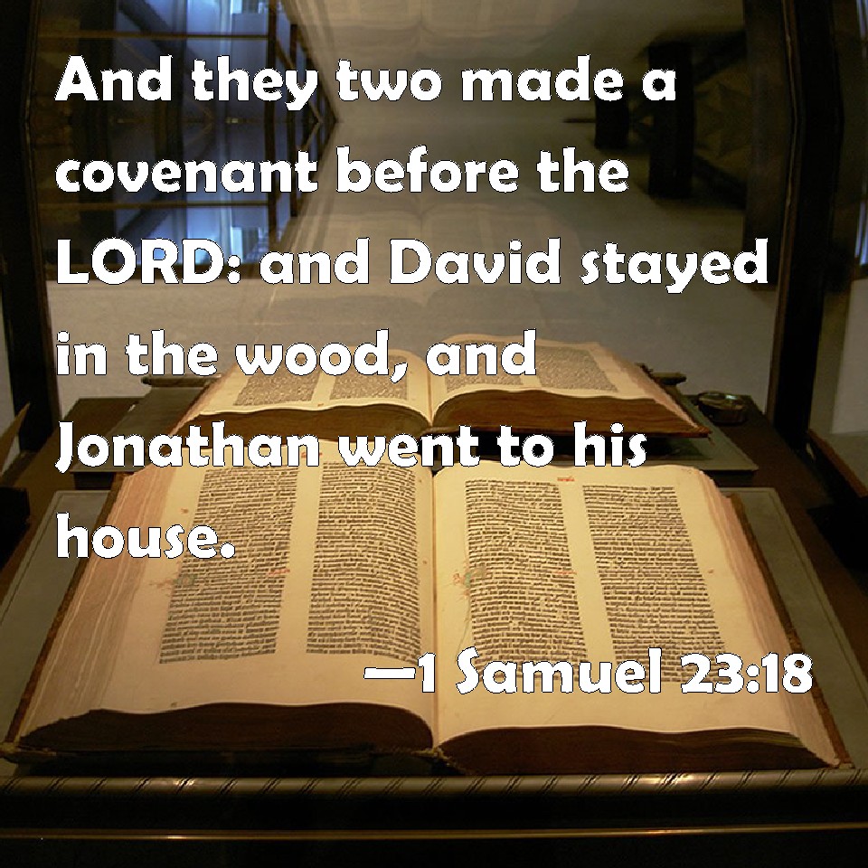 1 Samuel 23:18 And they two made a covenant before the LORD: and David stayed in the wood, and Jonathan went to his house.