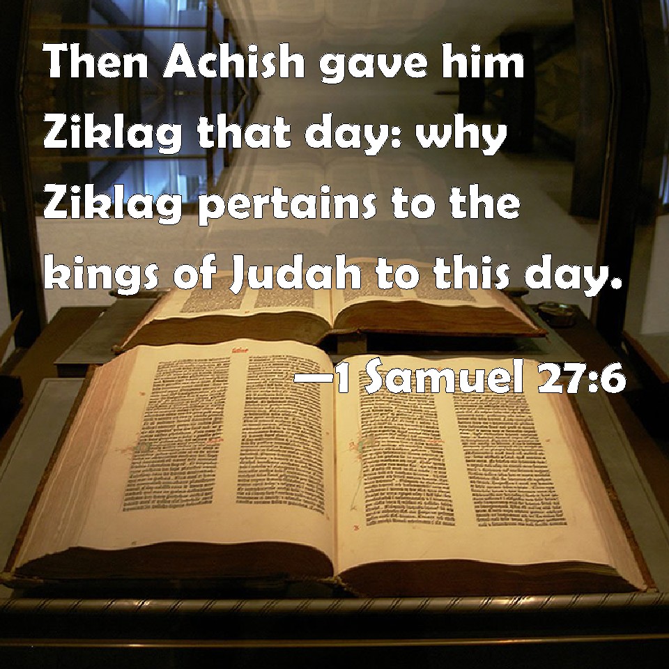 1 Samuel 27:6 Then Achish gave him Ziklag that day: why Ziklag pertains to the kings of Judah to this day.