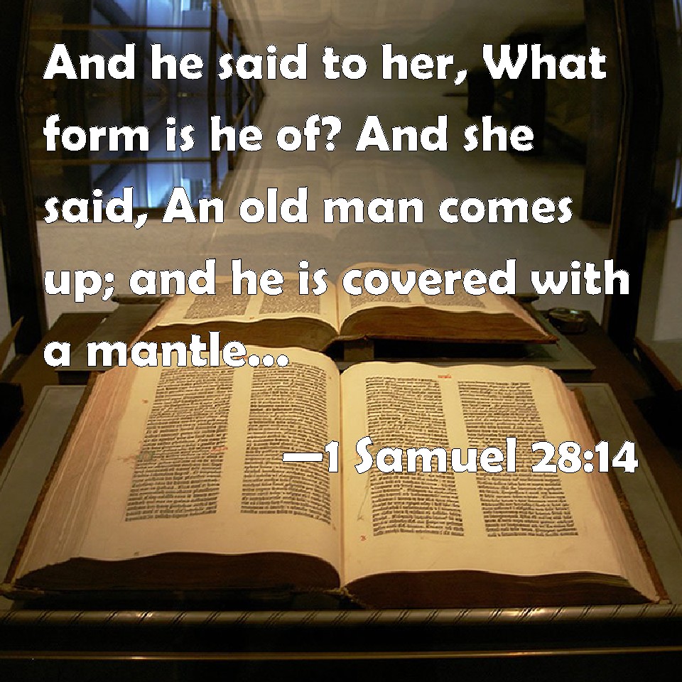 Choose a Background 1 Samuel 28:14 And he said to her, What form is he of? And she said, An old man comes up; and he is covered with a mantle. And Saul perceived that it was Samuel, and he stooped with his face to the ground, and bowed himself. KJV: And he said unto her, What form is he of? And she said, An old man cometh up; and he is covered with a mantle. And Saul perceived that it was Samuel, and he stooped with his face to the ground, and bowed himself. DRB: And he said to her: What form is he of? And she said: An old man cometh up, and he is covered with a mantle. And Saul understood that it was Samuel, and he bowed himself with his face to the ground, and adored. DBT: And he said to her, What is his form? And she said, An old man comes up; and he is covered with a mantle. And Saul knew that it was Samuel, and he stooped with his face to the ground, and bowed himself. ERV: And he said unto her, What form is he of? And she said, An old man cometh up; and he is covered with a robe. And Saul perceived that it was Samuel, and he bowed with his face to the ground, and did obeisance. WBT: And he said to her, What is his form? And she said, An old man cometh up; and he is covered with a mantle. And Saul perceived that it was Samuel, and he stooped with his face to the ground, and bowed himself. WEB: He said to her, "What does he look like?" She said, "An old man comes up. He is covered with a robe." Saul perceived that it was Samuel, and he bowed with his face to the ground, and did obeisance. YLT: And he saith to her, 'What is his form?' and she saith, 'An aged man is coming up, and he is covered with an upper robe;' and Saul knoweth that he is Samuel, and boweth — face to thee earth — and doth obeisance.Links 1 Samuel 28:14 NIV • 1 Samuel 28:14 NLT • 1 Samuel 28:14 ESV • 1 Samuel 28:14 NASB • 1 Samuel 28:14 KJV • 1 Samuel 28:14 Interlinear • 1 Samuel 28:14 Commentaries • 1 Samuel 28:14 Parallel Texts • 1 Samuel 28:14 Bible Apps • 1 Samuel 28:14 Parallel • Bible Hub |