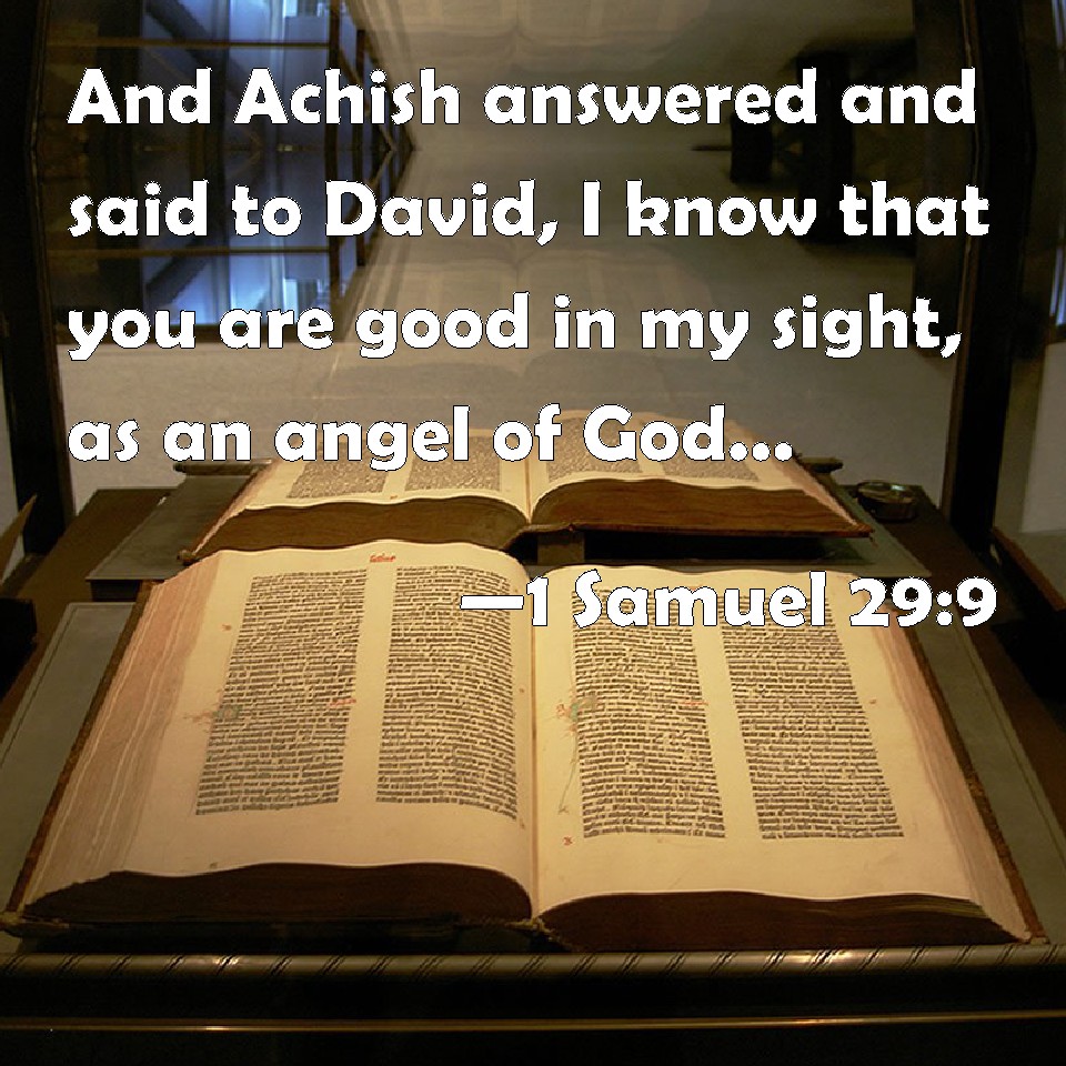 Choose a Background 1 Samuel 29:9 And Achish answered and said to David, I know that you are good in my sight, as an angel of God: notwithstanding the princes of the Philistines have said, He shall not go up with us to the battle. KJV: And Achish answered and said to David, I know that thou art good in my sight, as an angel of God: notwithstanding the princes of the Philistines have said, He shall not go up with us to the battle. DRB: And Achis answering said to David: I know that thou art good in my sight, as an angel of God: but the princes of the Philistines have said: He shall not go up with us to the battle. DBT: And Achish answered and said to David, I know that thou art acceptable to me, as an angel of God; nevertheless the princes of the Philistines have said, He shall not go up with us to the battle. ERV: And Achish answered and said to David, I know that thou art good in my sight, as an angel of God: notwithstanding the princes of the Philistines have said, He shall not go up with us to the battle. WBT: And Achish answered and said to David, I know that thou art good in my sight, as an angel of God: notwithstanding, the princes of the Philistines have said, He shall not go up with us to the battle. WEB: Achish answered David, "I know that you are good in my sight, as an angel of God. Notwithstanding the princes of the Philistines have said, 'He shall not go up with us to the battle.' YLT: And Achish answereth and saith unto David, 'I have known that thou art good in mine eyes as a messenger of God; only, the princes of the Philistines have said, He doth not go up with us into battle;Links 1 Samuel 29:9 NIV • 1 Samuel 29:9 NLT • 1 Samuel 29:9 ESV • 1 Samuel 29:9 NASB • 1 Samuel 29:9 KJV • 1 Samuel 29:9 Interlinear • 1 Samuel 29:9 Commentaries • 1 Samuel 29:9 Parallel Texts • 1 Samuel 29:9 Bible Apps • 1 Samuel 29:9 Parallel • Bible Hub |