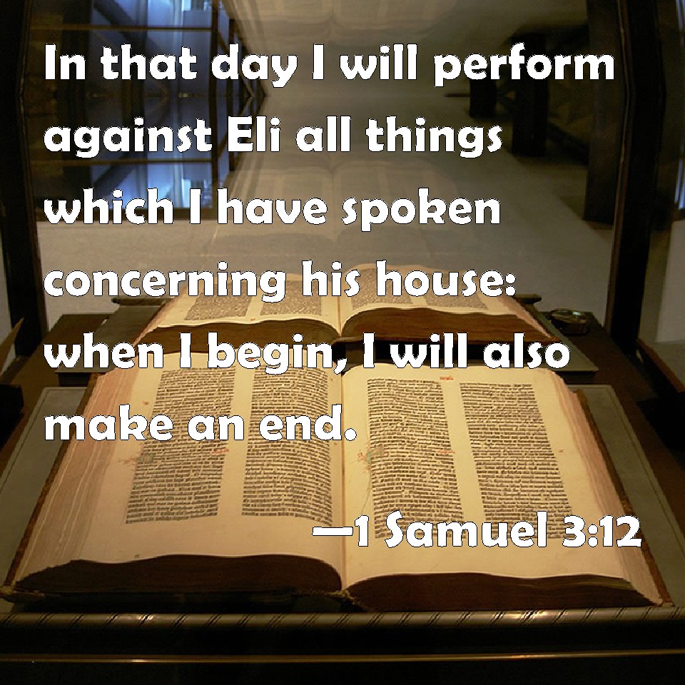 1 Samuel 3:12 In that day I will perform against Eli all things which I have spoken concerning his house: when I begin, I will also make an end.