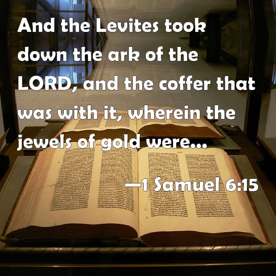 Choose a Background 1 Samuel 6:15 And the Levites took down the ark of the LORD, and the coffer that was with it, wherein the jewels of gold were, and put them on the great stone: and the men of Bethshemesh offered burnt offerings and sacrificed sacrifices the same day to the LORD. KJV: And the Levites took down the ark of the LORD, and the coffer that was with it, wherein the jewels of gold were, and put them on the great stone: and the men of Bethshemesh offered burnt offerings and sacrificed sacrifices the same day unto the LORD. DRB: And the Levites took down the ark of God, and the little box that was at the side of it, wherein were the vessels of gold, and they put them upon the great stone. The men also of Bethsames offered holocausts and sacrificed victims that day to the Lord. DBT: And the Levites took down the ark of Jehovah, and the coffer that was with it, in which were the golden jewels, and put them on the great stone; and the men of Beth-shemesh offered up burnt-offerings and sacrificed sacrifices the same day to Jehovah. ERV: And the Levites took down the ark of the LORD, and the coffer that was with it, wherein the jewels of gold were, and put them on the great stone: and the men of Beth-shemesh offered burnt offerings and sacrificed sacrifices the same day unto the LORD. WBT: And the Levites took down the ark of the LORD, and the coffer that was with it, in which were the jewels of gold, and put them on the great stone: and the men of Beth-shemesh offered burnt-offerings and sacrificed sacrifices the same day to the LORD. WEB: The Levites took down the ark of Yahweh, and the coffer that was with it, in which the jewels of gold were, and put them on the great stone: and the men of Beth Shemesh offered burnt offerings and sacrificed sacrifices the same day to Yahweh. YLT: And the Levites have taken down the ark of Jehovah, and the coffer which is with it, in which are the vessels of gold, and place them on the great stone; and the men of Beth-Shemesh have caused to ascend burnt-offerings and sacrifice sacrifices in that day to Jehovah;Links 1 Samuel 6:15 NIV • 1 Samuel 6:15 NLT • 1 Samuel 6:15 ESV • 1 Samuel 6:15 NASB • 1 Samuel 6:15 KJV • 1 Samuel 6:15 Interlinear • 1 Samuel 6:15 Commentaries • 1 Samuel 6:15 Parallel Texts • 1 Samuel 6:15 Bible Apps • 1 Samuel 6:15 Parallel • Bible Hub |