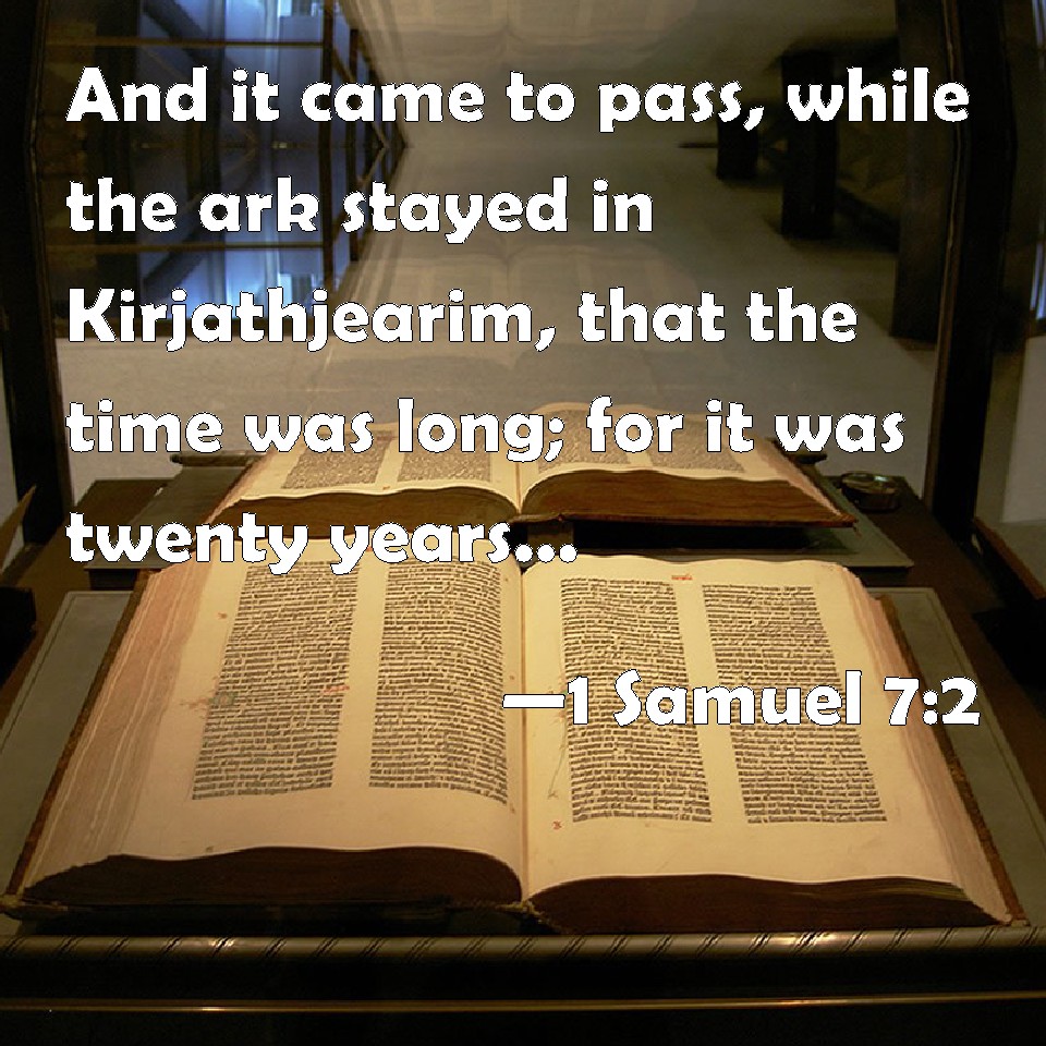 Choose a Background 1 Samuel 7:2 And it came to pass, while the ark stayed in Kirjathjearim, that the time was long; for it was twenty years: and all the house of Israel lamented after the LORD. KJV: And it came to pass, while the ark abode in Kirjathjearim, that the time was long; for it was twenty years: and all the house of Israel lamented after the LORD. DRB: And it came to pass, that from the day the ark of the Lord abode in Cariathiarim days were multiplied, (for it was now the twentieth year,) and all the house of Israel rested following the Lord. DBT: And it came to pass, from the day that the ark abode in Kirjath-jearim, that the time was long; for it was twenty years. And all the house of Israel lamented after Jehovah. ERV: And it came to pass, from the day that the ark abode in Kiriath-jearim, that the time was long; for it was twenty years: and all the house of Israel lamented after the LORD. WBT: And it came to pass, while the ark abode in Kirjath-jearim, that the time was long; for it was twenty years: and all the house of Israel lamented after the LORD. WEB: It happened, from the day that the ark stayed in Kiriath Jearim, that the time was long; for it was twenty years: and all the house of Israel lamented after Yahweh. YLT: And it cometh to pass, from the day of the dwelling of the ark in Kirjath-Jearim, that the days are multiplied — yea, they are twenty years — and wail do all the house of Israel after Jehovah.Links 1 Samuel 7:2 NIV • 1 Samuel 7:2 NLT • 1 Samuel 7:2 ESV • 1 Samuel 7:2 NASB • 1 Samuel 7:2 KJV • 1 Samuel 7:2 Interlinear • 1 Samuel 7:2 Commentaries • 1 Samuel 7:2 Parallel Texts • 1 Samuel 7:2 Bible Apps • 1 Samuel 7:2 Parallel • Bible Hub |