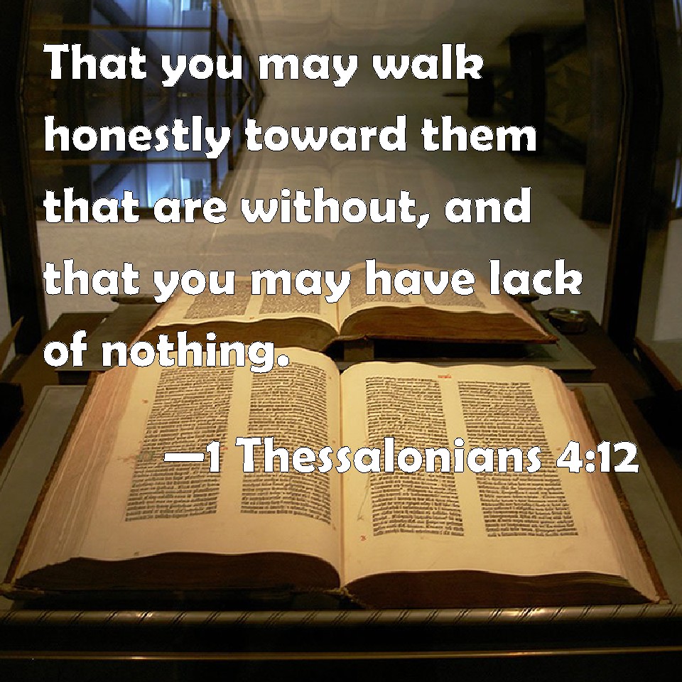 1 Thessalonians 4:12 That you may walk honestly toward them that are without, and that you may have lack of nothing.
