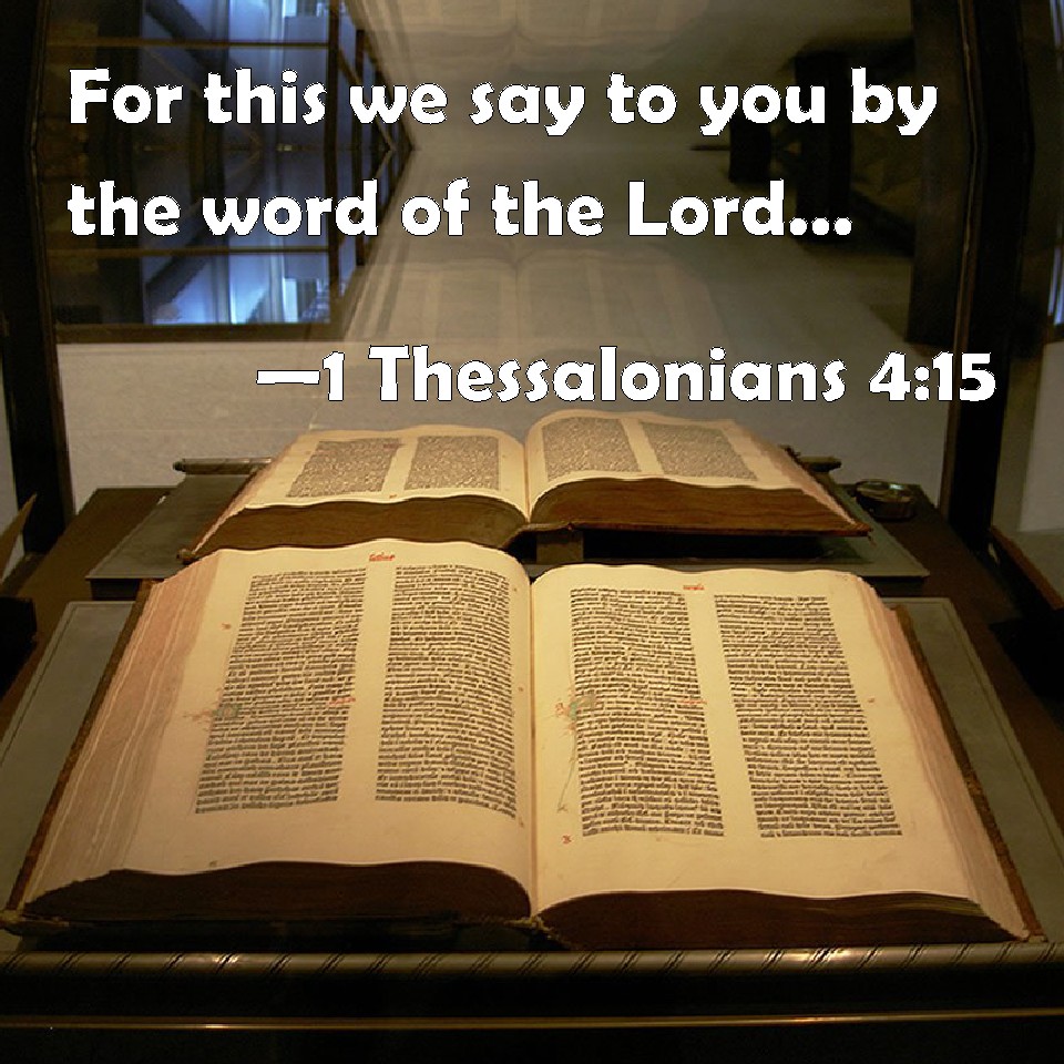 Choose a Background 1 Thessalonians 4:15 For this we say to you by the word of the Lord, that we which are alive and remain to the coming of the Lord shall not prevent them which are asleep. KJV: For this we say unto you by the word of the Lord, that we which are alive and remain unto the coming of the Lord shall not prevent them which are asleep. DRB: For this we say unto you in the word of the Lord, that we who are alive, who remain unto the coming of the Lord, shall not prevent them who have slept. DBT: (For this we say to you in the word of the Lord, that we, the living, who remain to the coming of the Lord, are in no way to anticipate those who have fallen asleep; ERV: For this we say unto you by the word of the Lord, that we that are alive, that are left unto the coming of the Lord, shall in no wise precede them that are fallen asleep. WBT: For this we say to you by the word of the Lord, that we who are alive and remain to the coming of the Lord shall not precede them who are asleep. WEB: For this we tell you by the word of the Lord, that we who are alive, who are left to the coming of the Lord, will in no way precede those who have fallen asleep. YLT: for this to you we say in the word of the Lord, that we who are living — who do remain over to the presence of the Lord — may not precede those asleep,Links 1 Thessalonians 4:15 NIV • 1 Thessalonians 4:15 NLT • 1 Thessalonians 4:15 ESV • 1 Thessalonians 4:15 NASB • 1 Thessalonians 4:15 KJV • 1 Thessalonians 4:15 Interlinear • 1 Thessalonians 4:15 Commentaries • 1 Thessalonians 4:15 Parallel Texts • 1 Thessalonians 4:15 Bible Apps • 1 Thessalonians 4:15 Parallel • Bible Hub |
