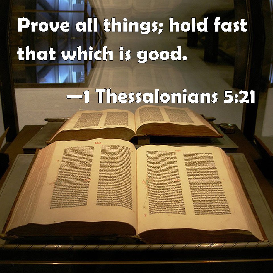 1 Thessalonians 5:21 Prove all things; hold fast that which is good.