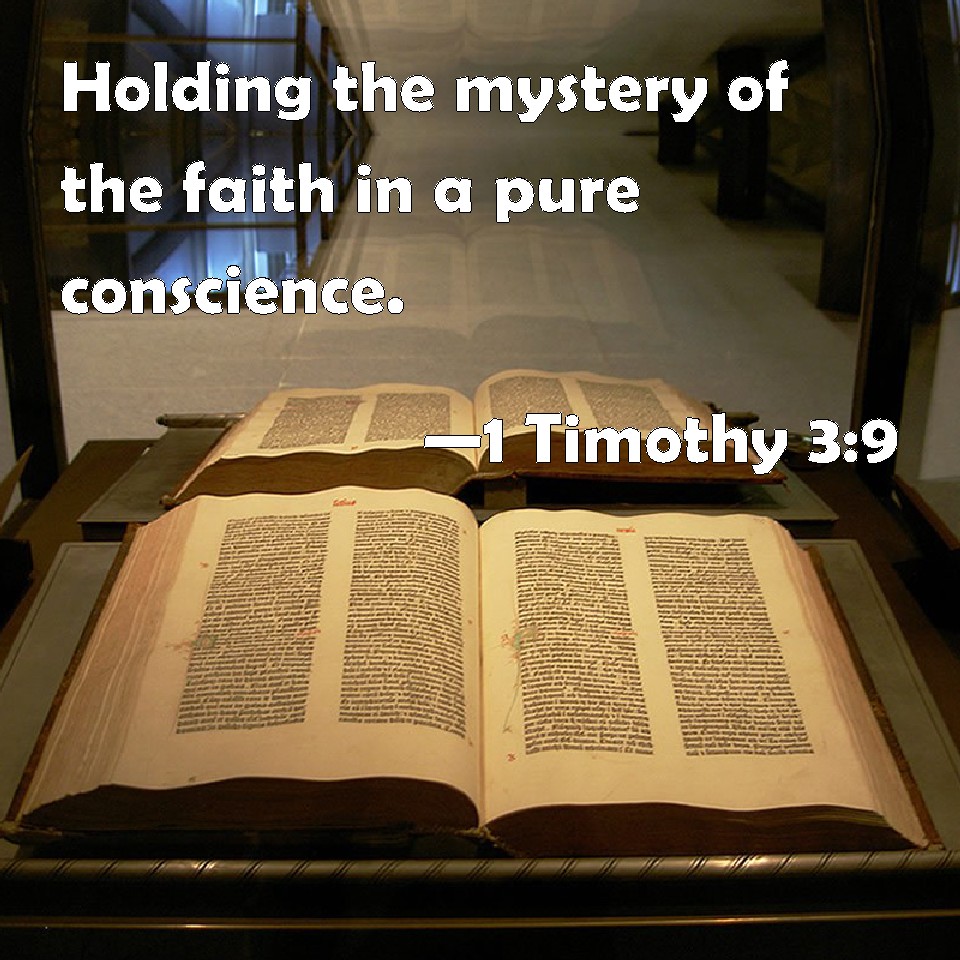 1 Timothy 3:9 Holding the mystery of the faith in a pure conscience.