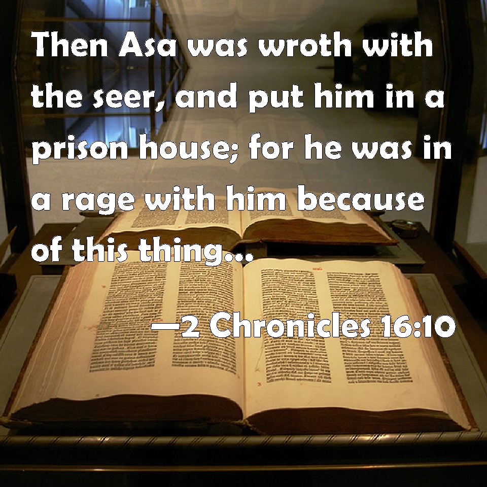 Then Asa was wroth with the seer, and put him in the prison house; for he was in a rage with him because of this thing. And Asa oppressed some of the people the same time.
