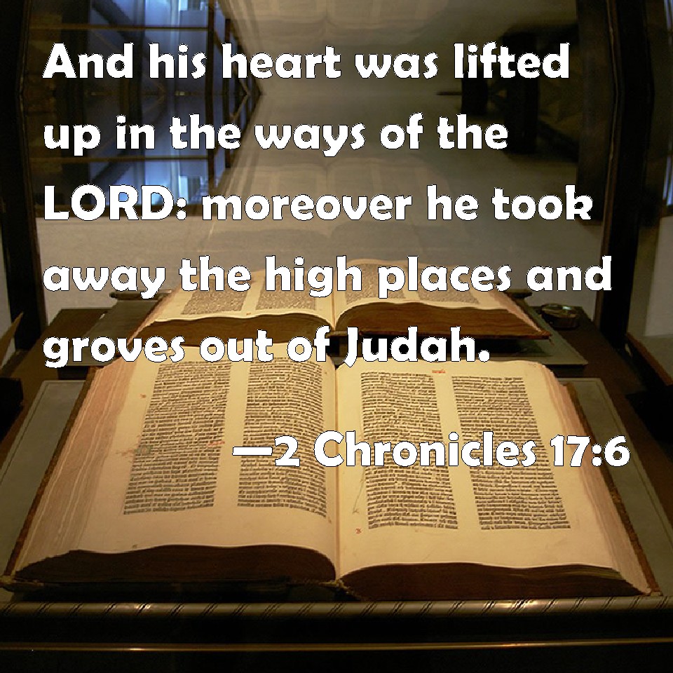 2 Chronicles 17:6 And his heart was lifted up in the ways of the LORD: moreover he took away the high places and groves out of Judah.