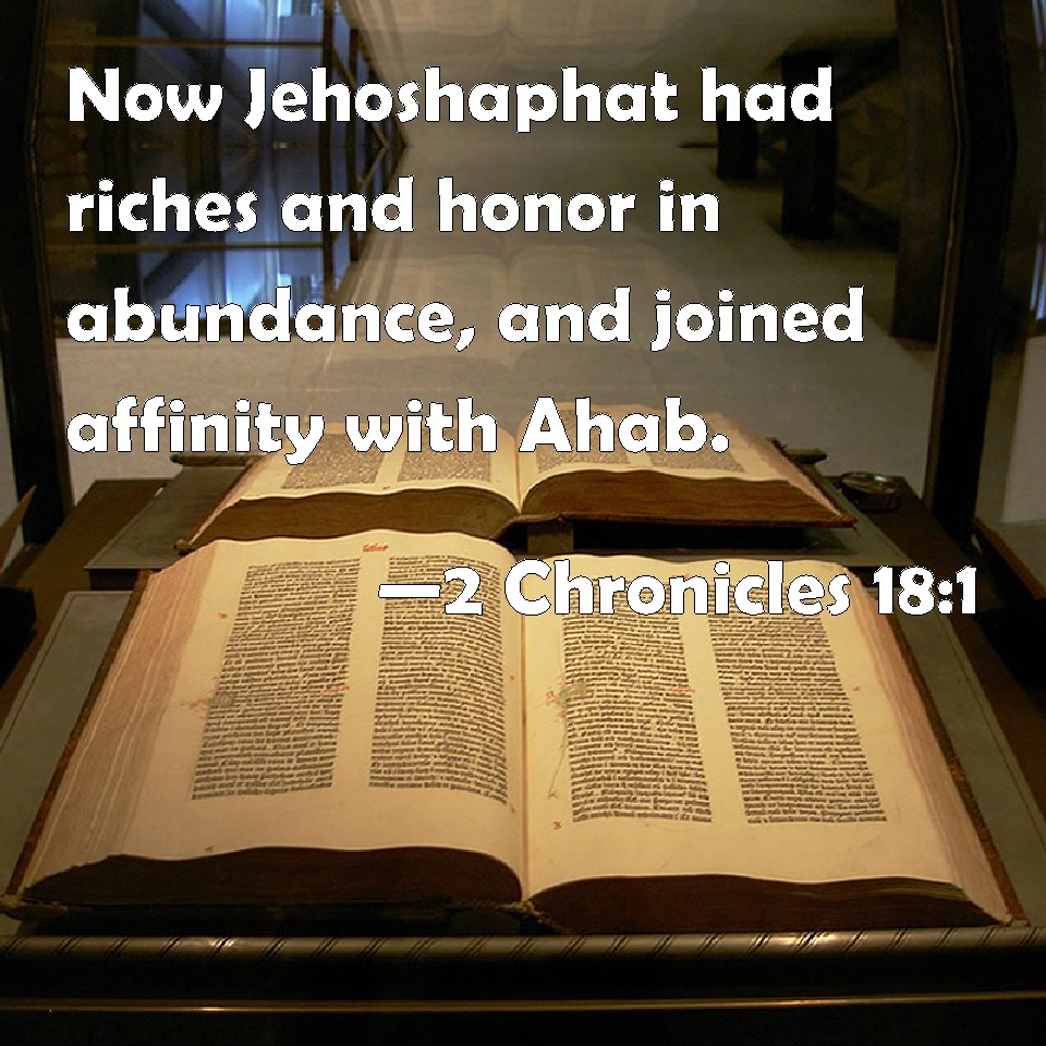 2 Chronicles 18:1 Now Jehoshaphat had riches and honor in abundance, and joined affinity with Ahab.