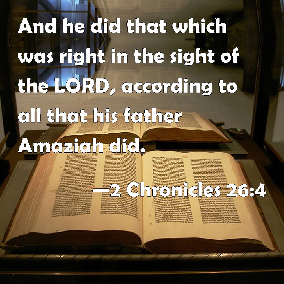 2 Chronicles 26:4 And he did that which was right in the sight of the LORD, according to all that his father Amaziah did.