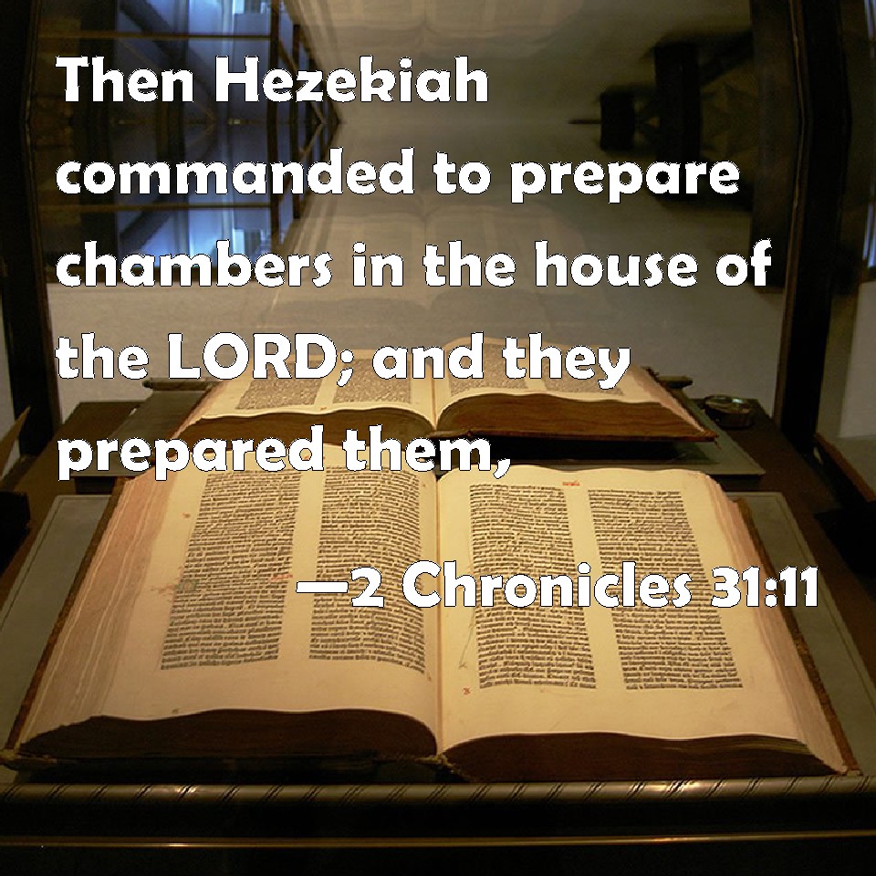2 Chronicles 31:11 Then Hezekiah commanded to prepare chambers in the house of the LORD; and they prepared them,