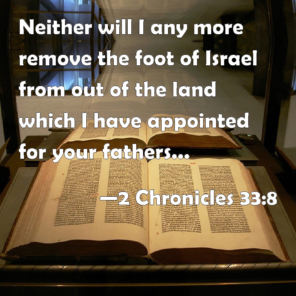 2 Chronicles 33:8 Neither will I any more remove the foot of Israel from out of the land which I have appointed for your fathers; so that they will take heed to do all that I have commanded them, according to the whole law and the statutes and the ordinances by the hand of Moses.