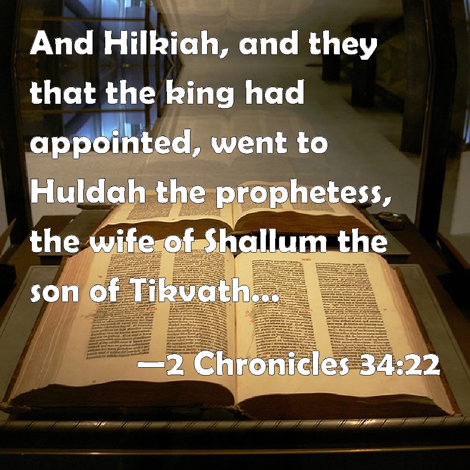 Choose a Background 2 Chronicles 34:22 And Hilkiah, and they that the king had appointed, went to Huldah the prophetess, the wife of Shallum the son of Tikvath, the son of Hasrah, keeper of the wardrobe; (now she dwelled in Jerusalem in the college:) and they spoke to her to that effect. KJV: And Hilkiah, and they that the king had appointed, went to Huldah the prophetess, the wife of Shallum the son of Tikvath, the son of Hasrah, keeper of the wardrobe; (now she dwelt in Jerusalem in the college:) and they spake to her to that effect. DRB: And Helcias and they that were sent with him by the king, went to Olda the prophetess, the wife of Sellum the son of Thecuath, the son of Hasra keeper of the wardrobe: who dwelt in Jerusalem in the Second part: and they spoke to her the words above mentioned. DBT: And Hilkijah and they that the king had appointed went to Huldah the prophetess, the wife of Shallum the son of Tokehath, son of Hasrah, keeper of the wardrobe: now she dwelt in Jerusalem in the second quarter of the town; and they spoke with her to that effect. ERV: So Hilkiah, and they whom the king had commanded, went to Huldah the prophetess, the wife of Shallum the son of Tokhath, the son of Hasrah, keeper of the wardrobe; (now she dwelt in Jerusalem in the second quarter;) and they spake to her to that effect. WBT: And Hilkiah, and they that the king had appointed, went to Huldah the prophetess, the wife of Shallum the son of Tikvath, the son of Hasrah, keeper of the wardrobe; (now she dwelt in Jerusalem in the college:) and they spoke to her to that effect. WEB: So Hilkiah, and they whom the king [had commanded], went to Huldah the prophetess, the wife of Shallum the son of Tokhath, the son of Hasrah, keeper of the wardrobe; (now she lived in Jerusalem in the second quarter;) and they spoke to her to that effect. YLT: And Hilkiah goeth, and they of the king, unto Huldah the prophetess, wife of Shallum son of Tikvath, son of Hasrah, keeper of the garments, and she is dwelling in Jerusalem in the Second, and they speak unto her thus.Links 2 Chronicles 34:22 NIV • 2 Chronicles 34:22 NLT • 2 Chronicles 34:22 ESV • 2 Chronicles 34:22 NASB • 2 Chronicles 34:22 KJV • 2 Chronicles 34:22 Interlinear • 2 Chronicles 34:22 Commentaries • 2 Chronicles 34:22 Parallel Texts • 2 Chronicles 34:22 Bible Apps • 2 Chronicles 34:22 Parallel • Bible Hub |