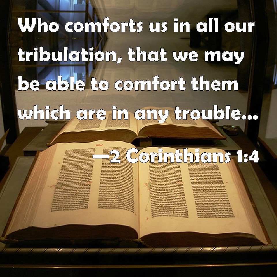 Choose a Background 2 Corinthians 1:4 Who comforts us in all our tribulation, that we may be able to comfort them which are in any trouble, by the comfort with which we ourselves are comforted of God. KJV: Who comforteth us in all our tribulation, that we may be able to comfort them which are in any trouble, by the comfort wherewith we ourselves are comforted of God. DRB: Who comforteth us in all our tribulation; that we also may be able to comfort them who are in all distress, by the exhortation wherewith we also are exhorted by God. DBT: who encourages us in all our tribulation, that we may be able to encourage those who are in any tribulation whatever, through the encouragement with which we ourselves are encouraged of God. ERV: who comforteth us in all our affliction, that we may be able to comfort them that are in any affliction, through the comfort wherewith we ourselves are comforted of God. WBT: Who comforteth us in all our tribulation, that we may be able to comfort them who are in any trouble by the consolation with which we ourselves are comforted by God. WEB: who comforts us in all our affliction, that we may be able to comfort those who are in any affliction, through the comfort with which we ourselves are comforted by God. YLT: who is comforting us in all our tribulation, for our being able to comfort those in any tribulation through the comfort with which we are comforted ourselves by God;Links 2 Corinthians 1:4 NIV • 2 Corinthians 1:4 NLT • 2 Corinthians 1:4 ESV • 2 Corinthians 1:4 NASB • 2 Corinthians 1:4 KJV • 2 Corinthians 1:4 Interlinear • 2 Corinthians 1:4 Commentaries • 2 Corinthians 1:4 Parallel Texts • 2 Corinthians 1:4 Bible Apps • 2 Corinthians 1:4 Parallel • Bible Hub |