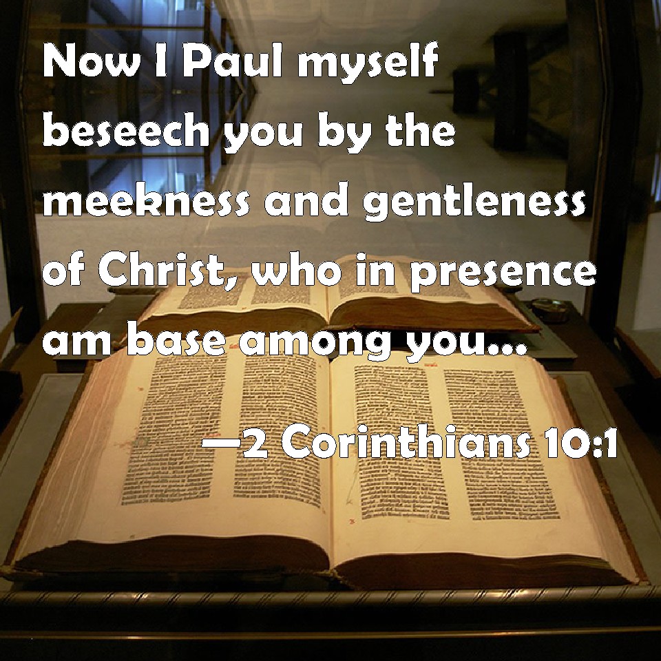 2 Corinthians 10:1 Now I Paul myself beseech you by the meekness and gentleness of Christ, who in presence am base among you, but being absent am bold toward you: