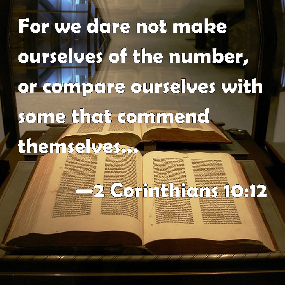 2 Corinthians 10:12 For we dare not make ourselves of the number, or compare ourselves with some that commend themselves: but they measuring themselves by themselves, and comparing themselves among themselves, are not wise.