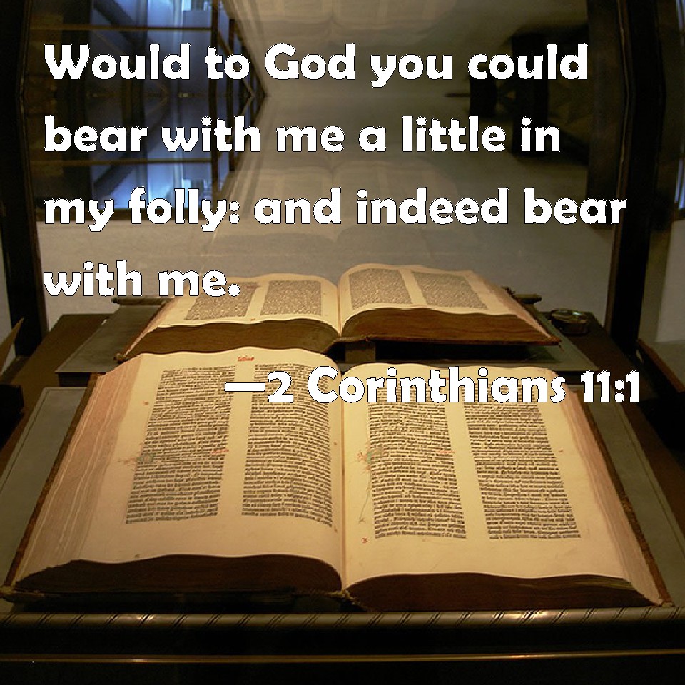 2 Corinthians 11:1 Would to God you could bear with me a little in my folly: and indeed bear with me.
