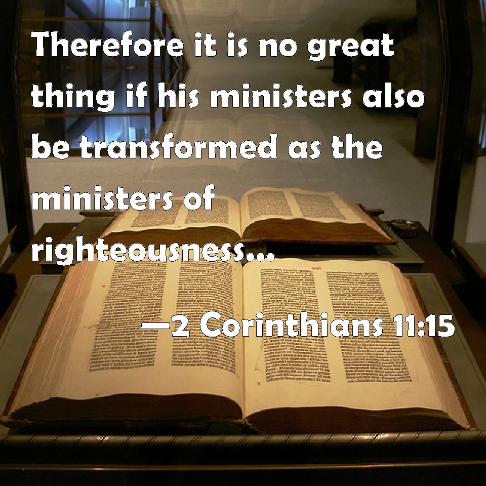 2 Corinthians 11:15 Therefore it is no great thing if his ministers also be transformed as the ministers of righteousness; whose end shall be according to their works.