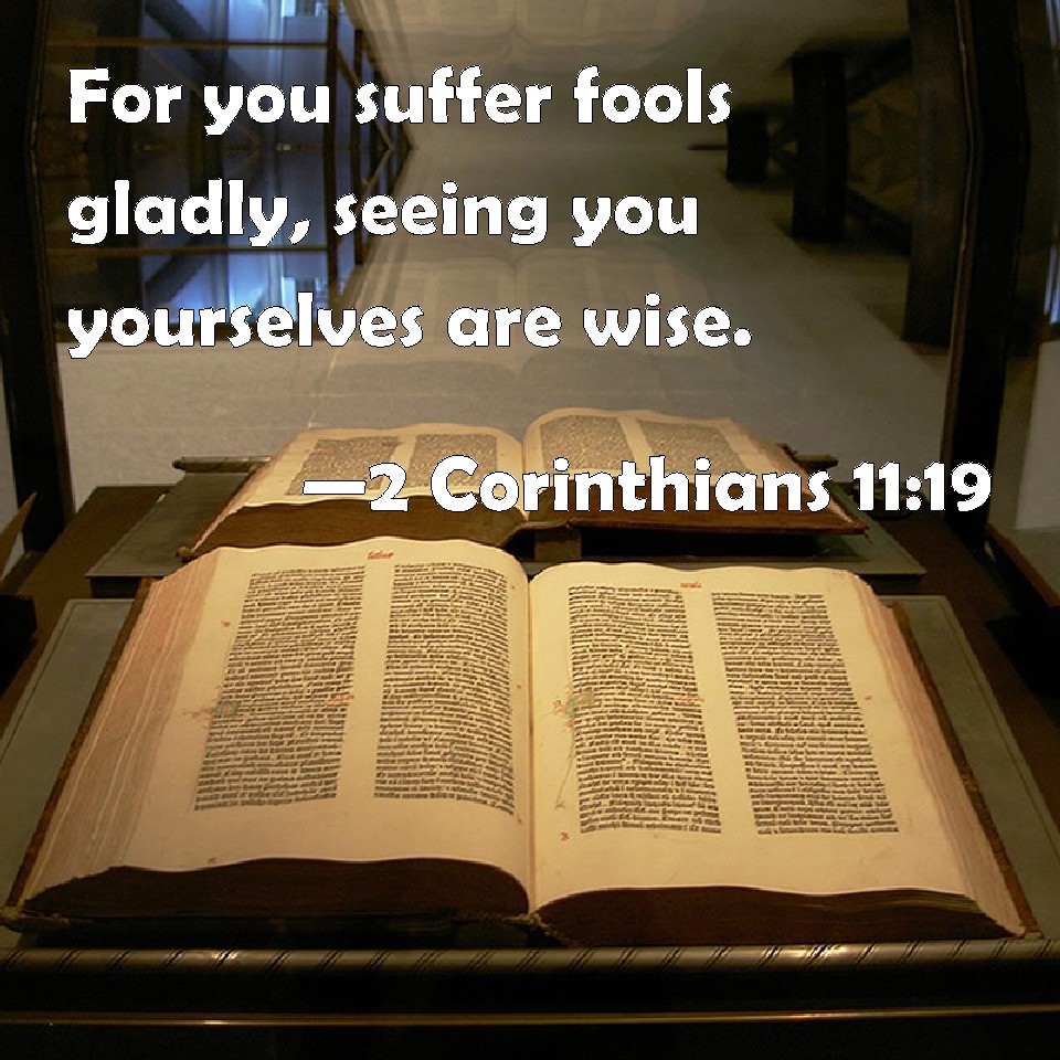2 Corinthians 11:19 For you suffer fools gladly, seeing you yourselves are wise.