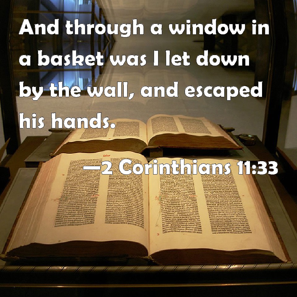 2 Corinthians 11:33 And through a window in a basket was I let down by the wall, and escaped his hands.