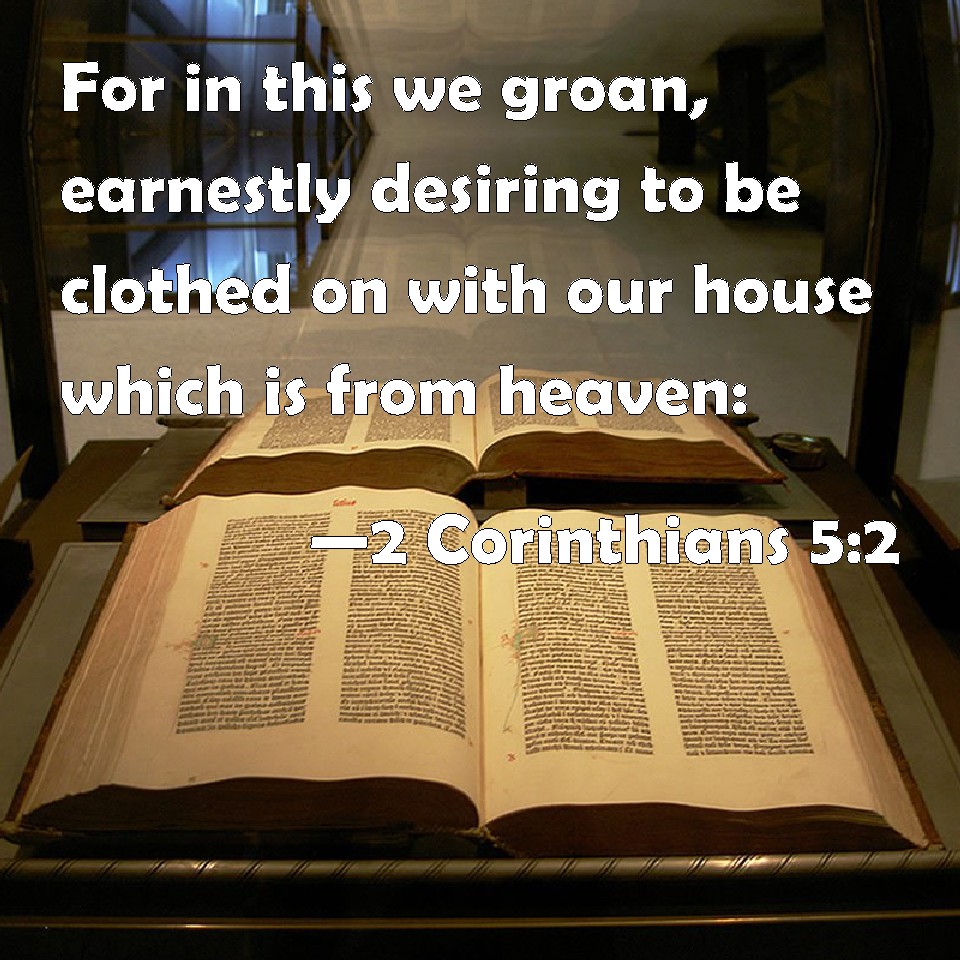 2 Corinthians 5:2 For in this we groan, earnestly desiring to be clothed on with our house which is from heaven: