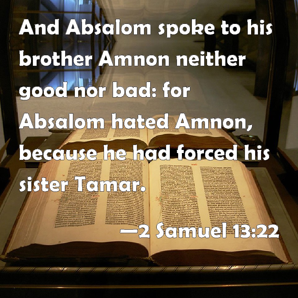 2 Samuel 13:22 And Absalom spoke to his brother Amnon neither good nor bad: for Absalom hated Amnon, because he had forced his sister Tamar.