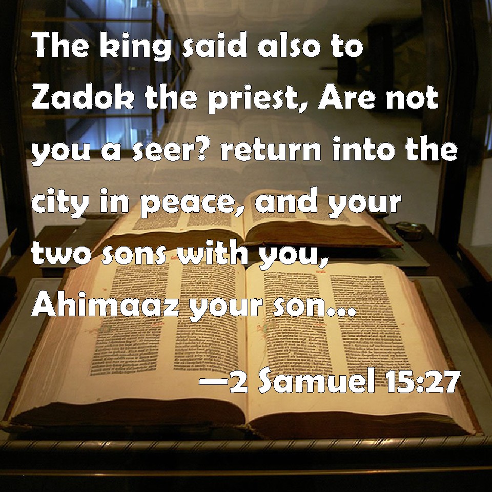 ERV:  The king said also unto Zadok the priest, Art thou not a seer? return into the city in peace, and your two sons with you, Ahimaaz thy son, and Jonathan the son of Abiathar.